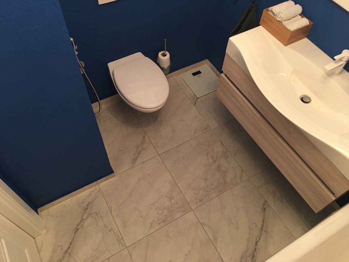 Вид сверху. Еще один спорный момент в нашей ванной — здесь нет полотенцесушителя и вообще никаких открытых полок.