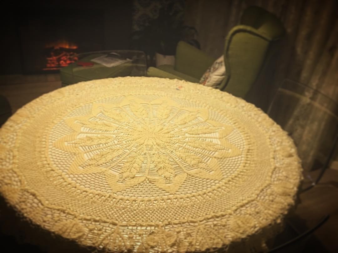 А это мама вяжет мне скатерть на стол! Первая примерка.