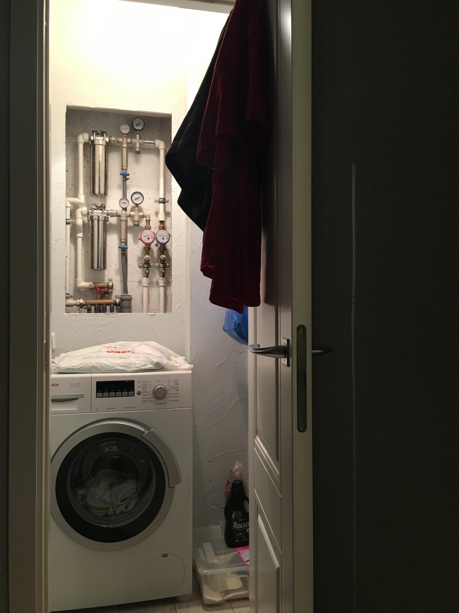Дверь ведет в постирочную. По первоначальному проекту здесь должен был быть второй санузел.