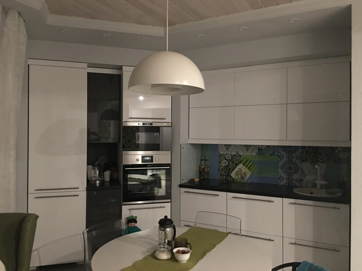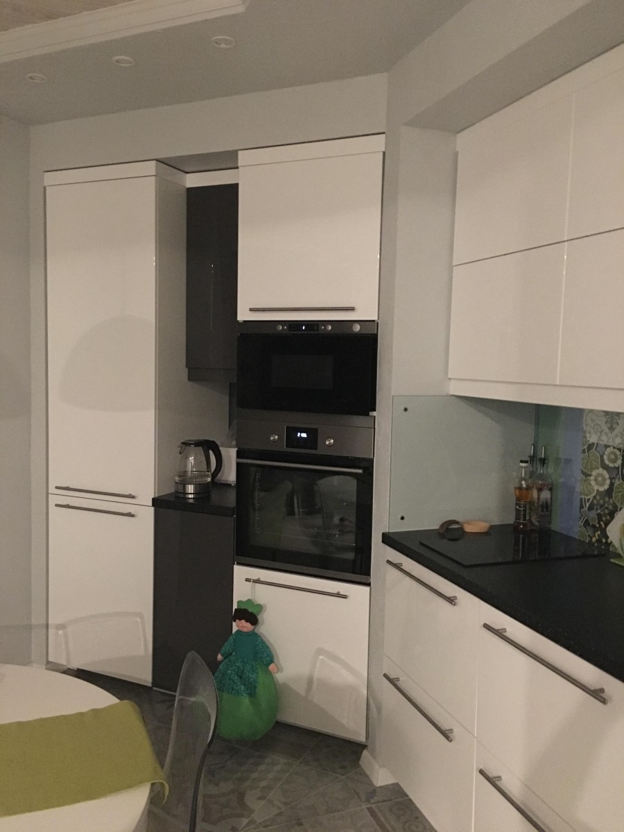1. Прощание с прихожей. В нашей квартире нет отдельного холла. Входная дверь ведет прямиком в объединенную кухню-гостиную. Изначально мы лишь планировали немного сдвинуть входную зону, но, сломав стену между маленькой прихожей (12 м²) и кухней (15 м²), увидели, какой простор и свет открываются. Решили оставить все как есть. На потолочном ригеле есть закладные для возможной установки раздвижной перегородки, если со временем такая открытость нам наскучит. Пока же мы в полном восторге.