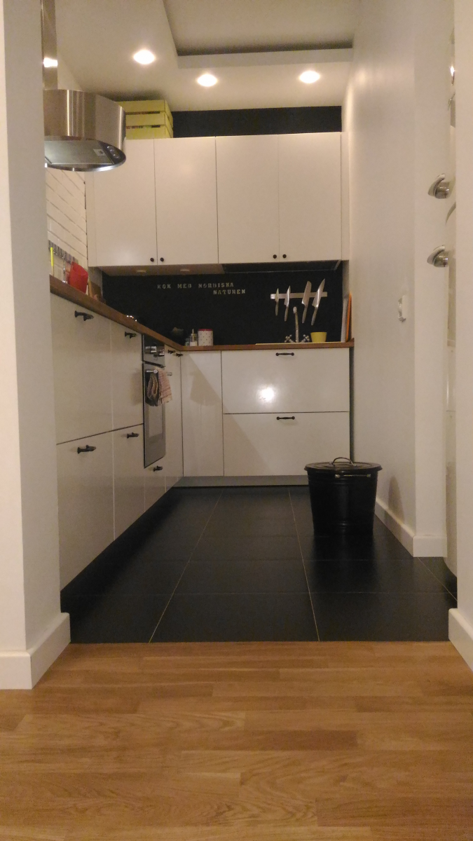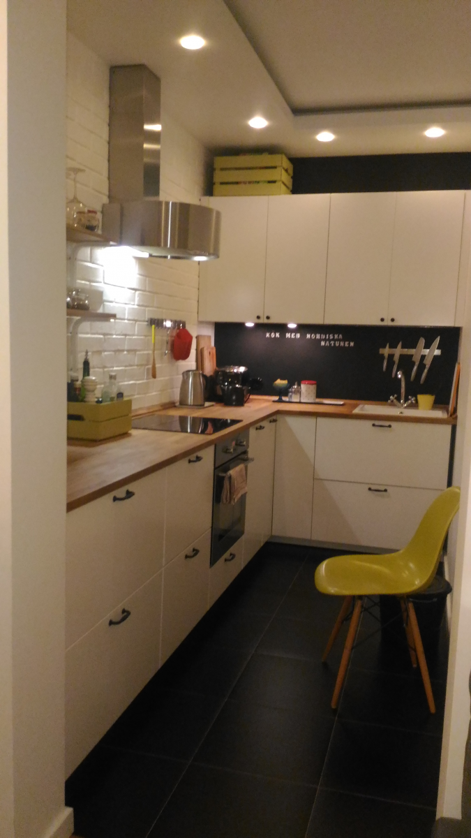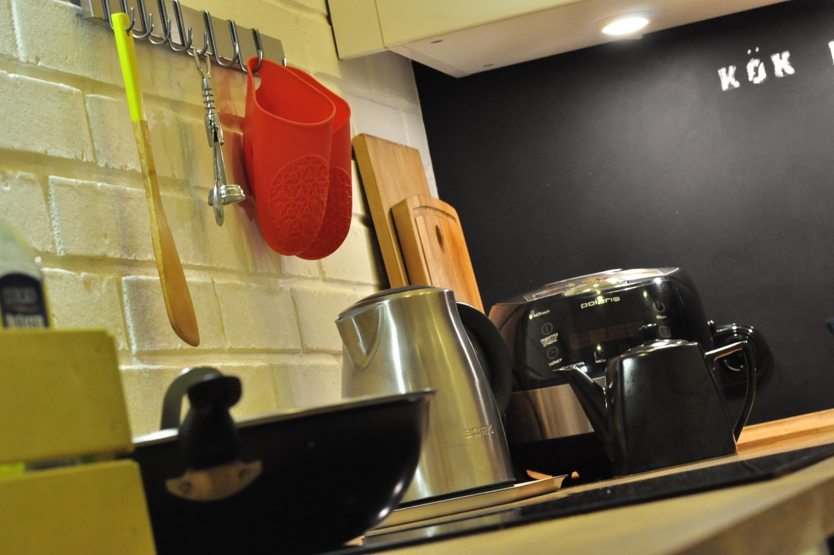 Кухня — это сердце нашего дома, место, где царит особая атмосфера. Здесь мы всей семьей готовим еду, дети играют на теплом полу, пока я нахожусь у плиты, и мы не боимся создать творческий беспорядок в процессе готовки. Это сугубо функциональное пространство, предназначенное для приготовления пищи, а не для приема гостей — для этого у нас есть отдельная столовая. Несмотря на компактные размеры (всего 6,5 квадратных метров), планировка кухни продумана до мелочей и очень удобна в использовании.