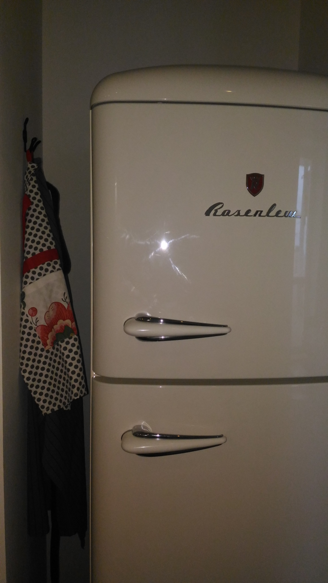 В интерьере кухни продолжена общая стилистика квартиры, но с добавлением ярких акцентов. К уже знакомой палитре я добавила несколько сочных красных деталей. Центральным элементом стал ретро-холодильник, частый гость в скандинавских интерьерах, который я безумно люблю.