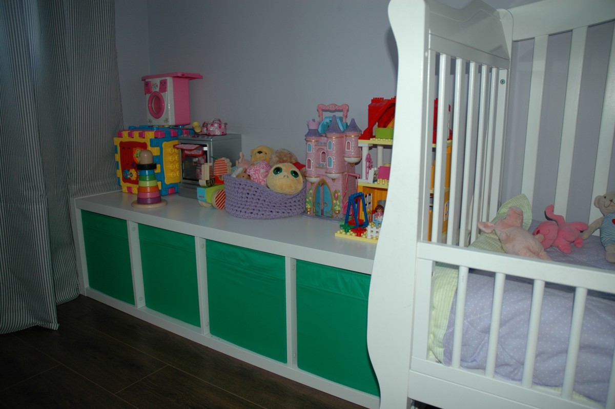 Вот такая комната у нас получилась. Я ею довольна, и детям, кажется, тоже нравится. В ближайшее время хочу добавить полочки для поделок и рисунков, которые скоро начнут появляться из садика. Присматриваю что-то подобное: