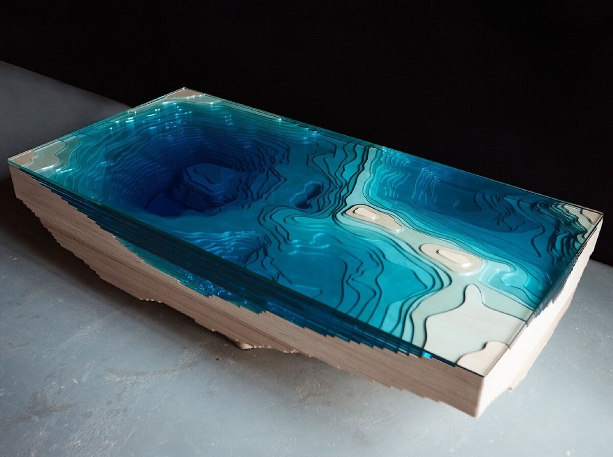 Художник и дизайнер Грег Классен создает невероятные предметы мебели и искусства, черпая вдохновение в суровой и прекрасной природе северо-запада Тихого океана. Его визитная карточка — уникальные столы, в поверхность которых врезаны голубые стеклянные реки, озера и водопады. Эти топографические вставки, напоминающие вид на водоемы с высоты птичьего полета, создают потрясающий визуальный эффект, превращая обычный предмет интерьера в произведение искусства.