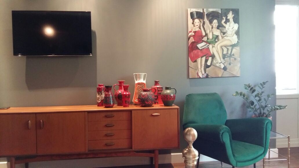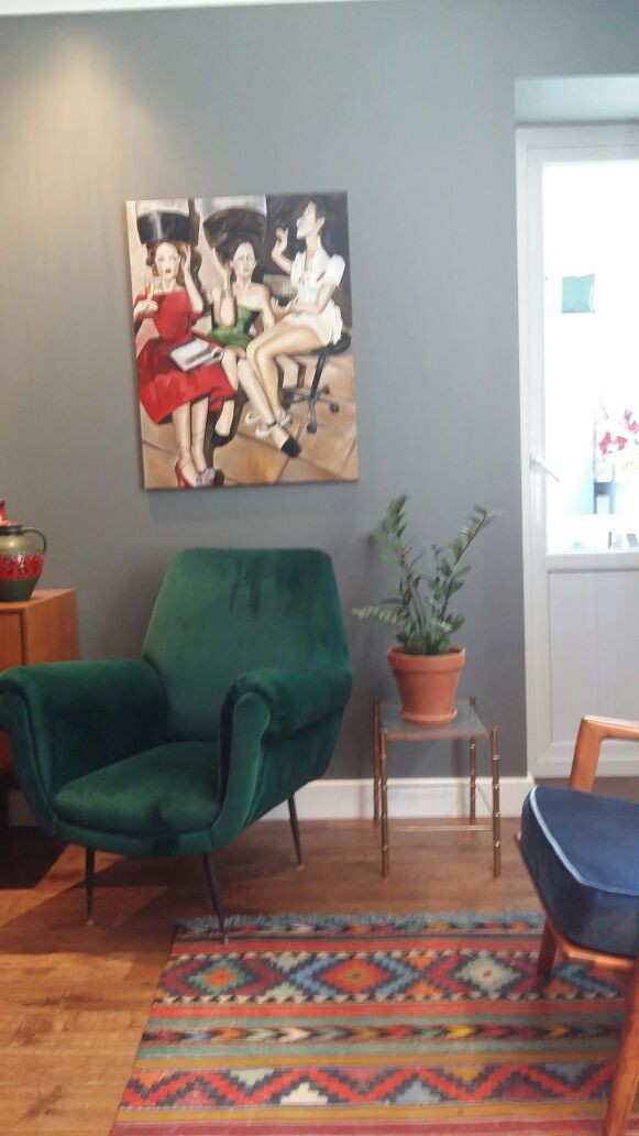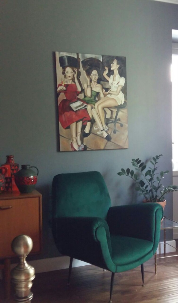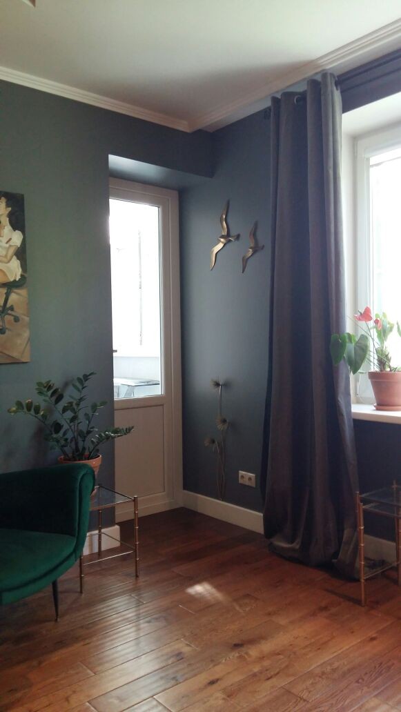 Особую ценность представляет картина, которую по моей просьбе нарисовала дочь подруги, вдохновившись фотографией из интернета. Самые реалистичные цвета можно увидеть на фото в заголовке статьи. Возможно, в будущем я внесу какие-то мелкие коррективы, но основа — та самая гармония серого и винтажа — меня полностью устраивает. Эти снимки были сделаны сразу после завершения работ, поэтому других фото пока нет.