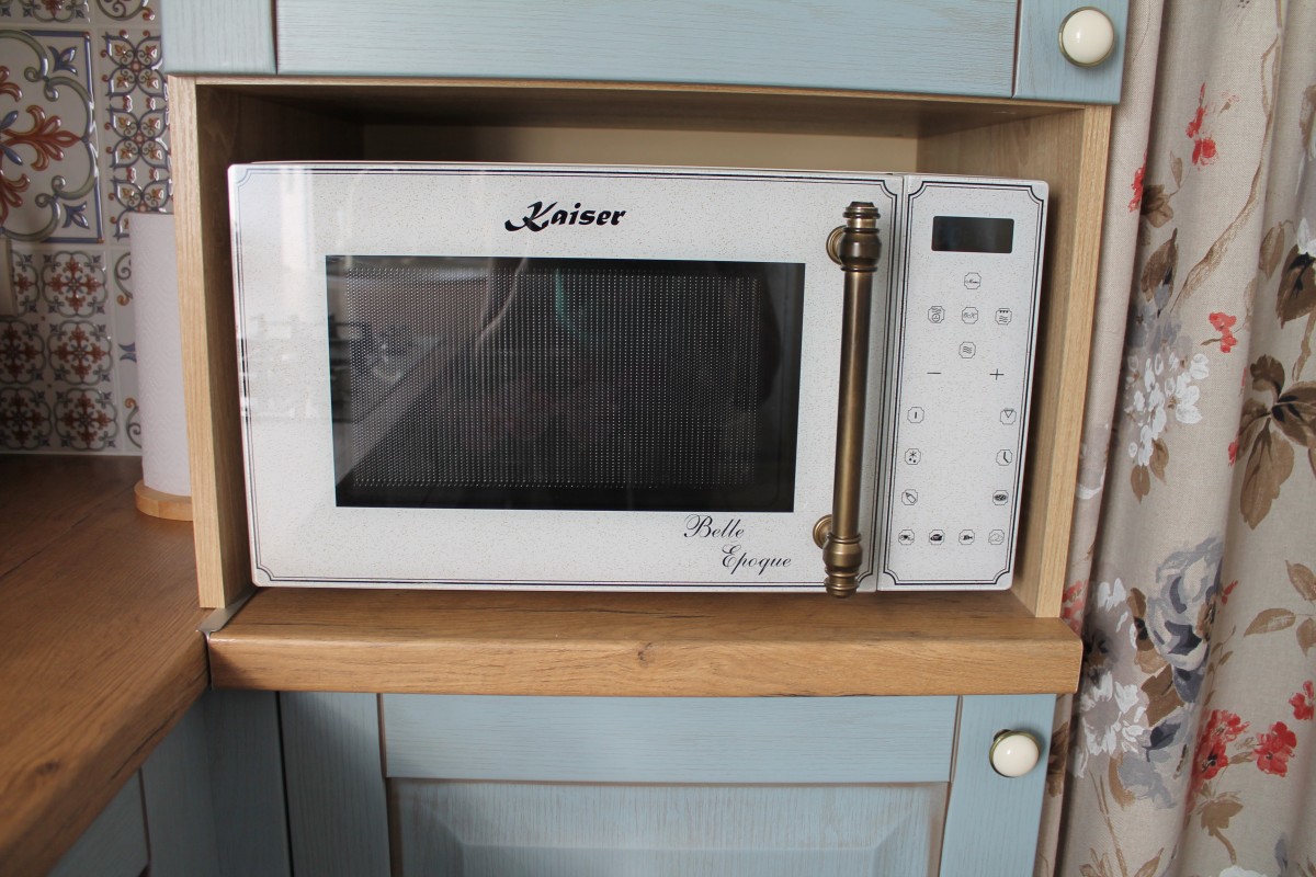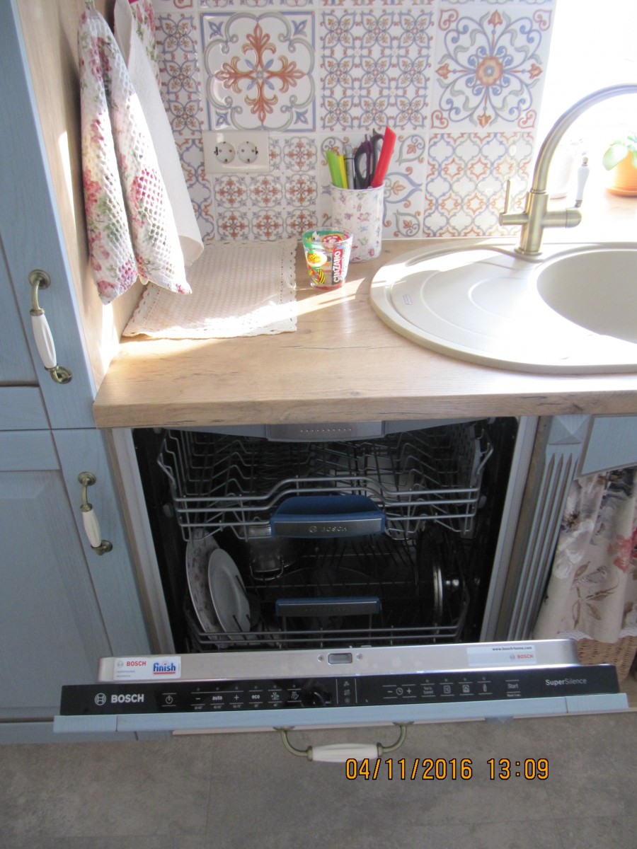 - Посудомоечная машина Bosch и микроволновка Kaiser были куплены ранее и отлично вписались в новый интерьер.