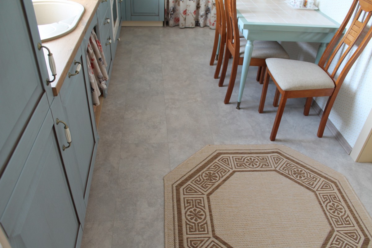 Для пола выбрали влагостойкий ламинат Egger Classic AQ+ «Кременто» (артикул F806 107-838). Его фактура очень похожа на натуральный камень, а в уходе он оказался просто идеальным — практичным и неприхотливым.