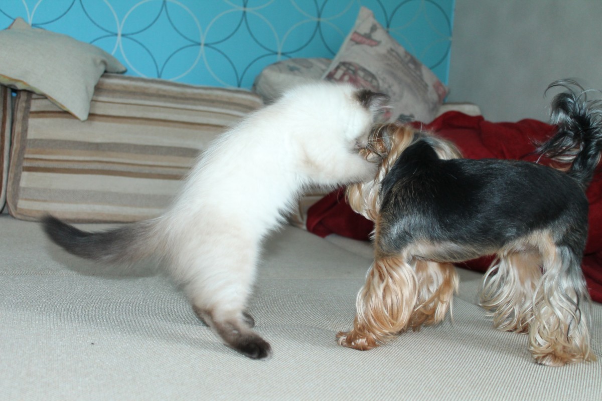 Наша жизнь на кухне и в доме стала еще веселее с появлением нового члена семьи — кошки по имени Шкода, породы Невская маскарадная. Вопреки поговорке, у нас прекрасно уживаются и кошка, и собака — они вместе играют, едят и спят.