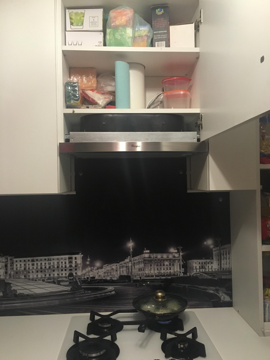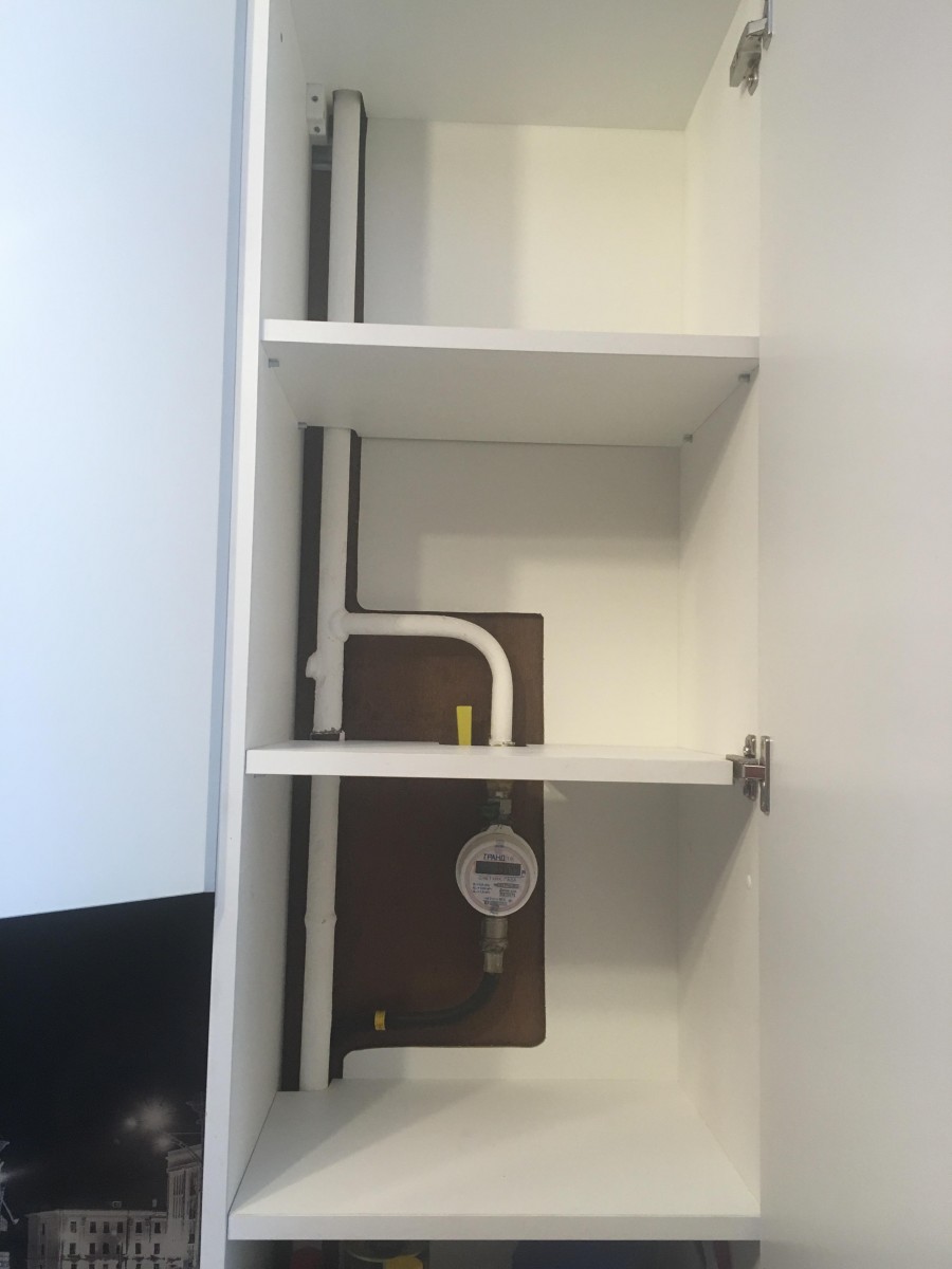 А в этом высоком пенальном шкафу я удачно замаскировала газовую трубу.
