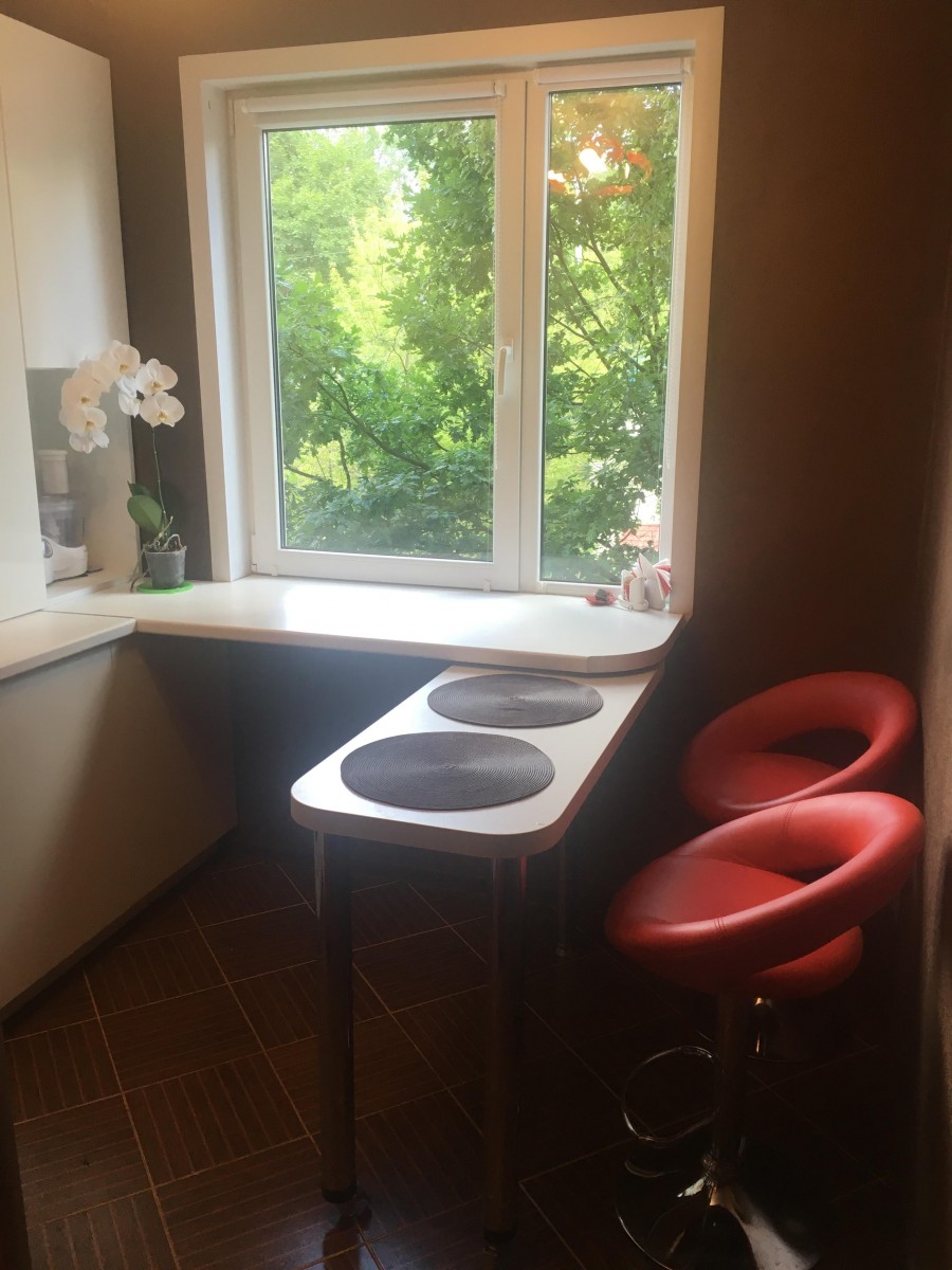 На этой дополнительной поверхности очень удобно раскатывать тесто, заниматься рукоделием или играть в настольные игры. Двигаемся дальше по кухне.
