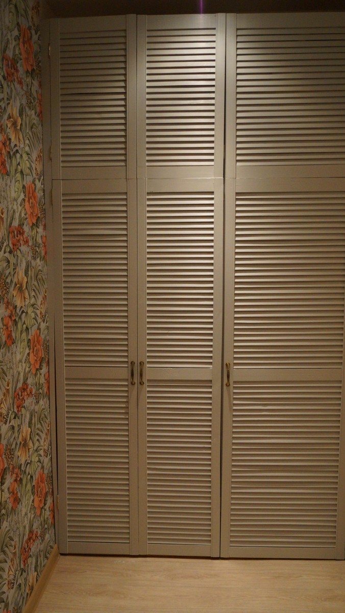 Новый шкафчик в прихожей с жалюзийными дверцами.
