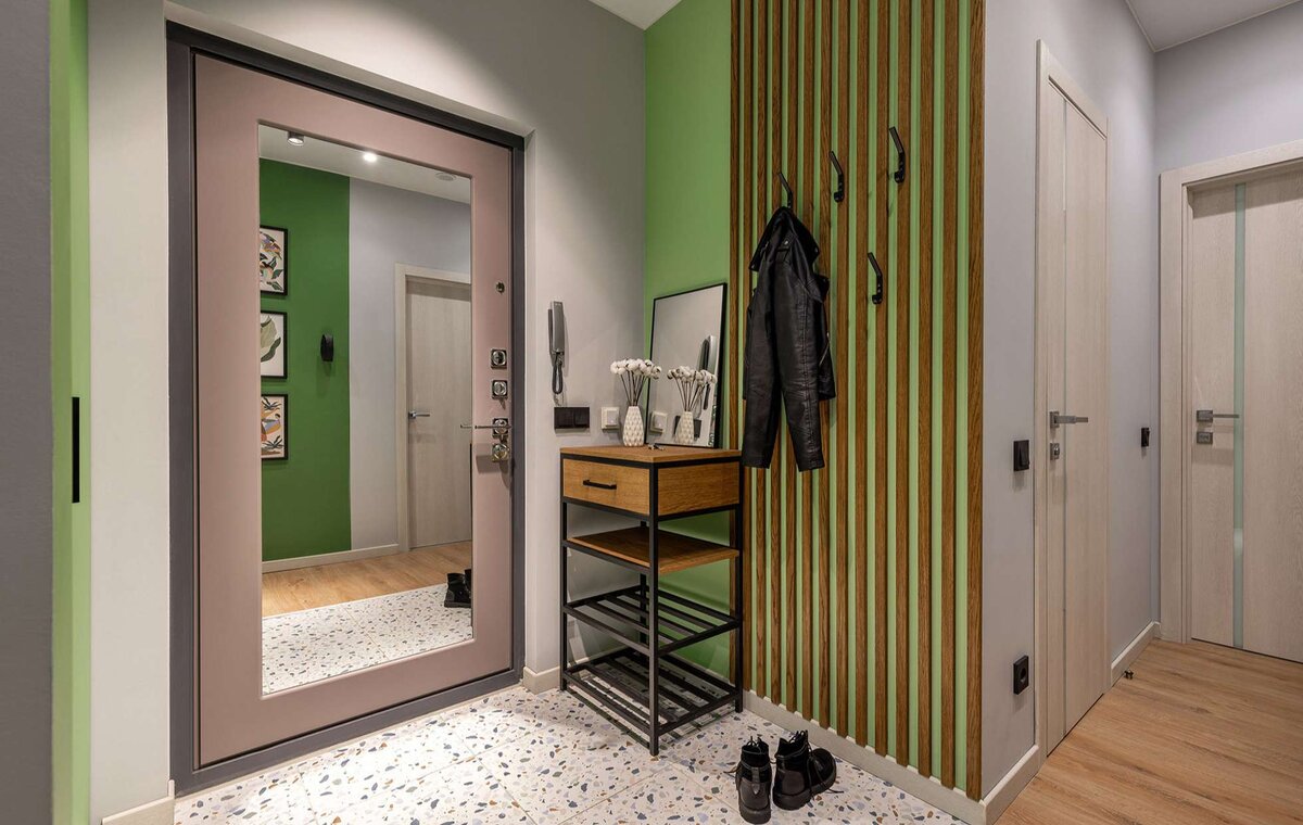 - Оптимизация дверных проёмов. В малогабаритных квартирах коридор часто буквально испещрён дверями. Там, где это уместно (например, в гостиную или на кухню), стоит рассмотреть демонтаж дверей и замену их на арки или раздвижные перегородки. Это освободит ценное пространство. Входную дверь, если позволяет конструкция, лучше установить так, чтобы она открывалась наружу.