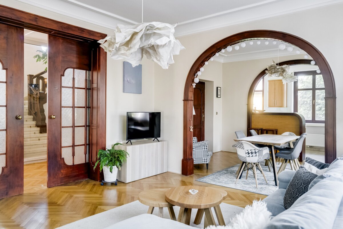 Архитектор Ян Клемпирж, руководивший проектом, отмечает: «Ключевой задачей было найти новую, более функциональную планировку для небольшого пространства. При этом важно было сохранить дух старого пражского района и органично вписать несколько ретро-элементов, которые хозяева привезли из своего прежнего дома».