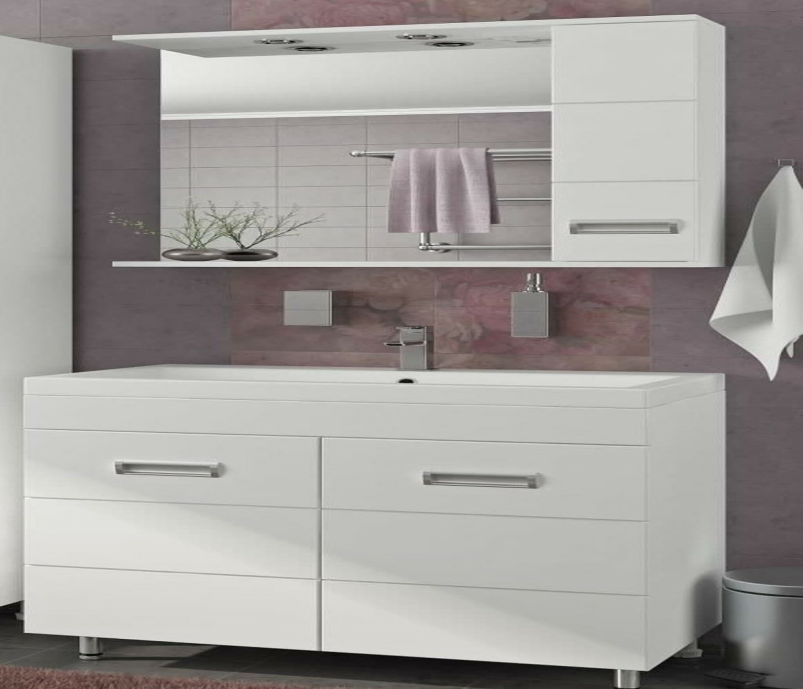 3) Комбинация с подвесной тумбой. Идеальный вариант, который сочетает эстетику подвесной конструкции с полезным местом для хранения.