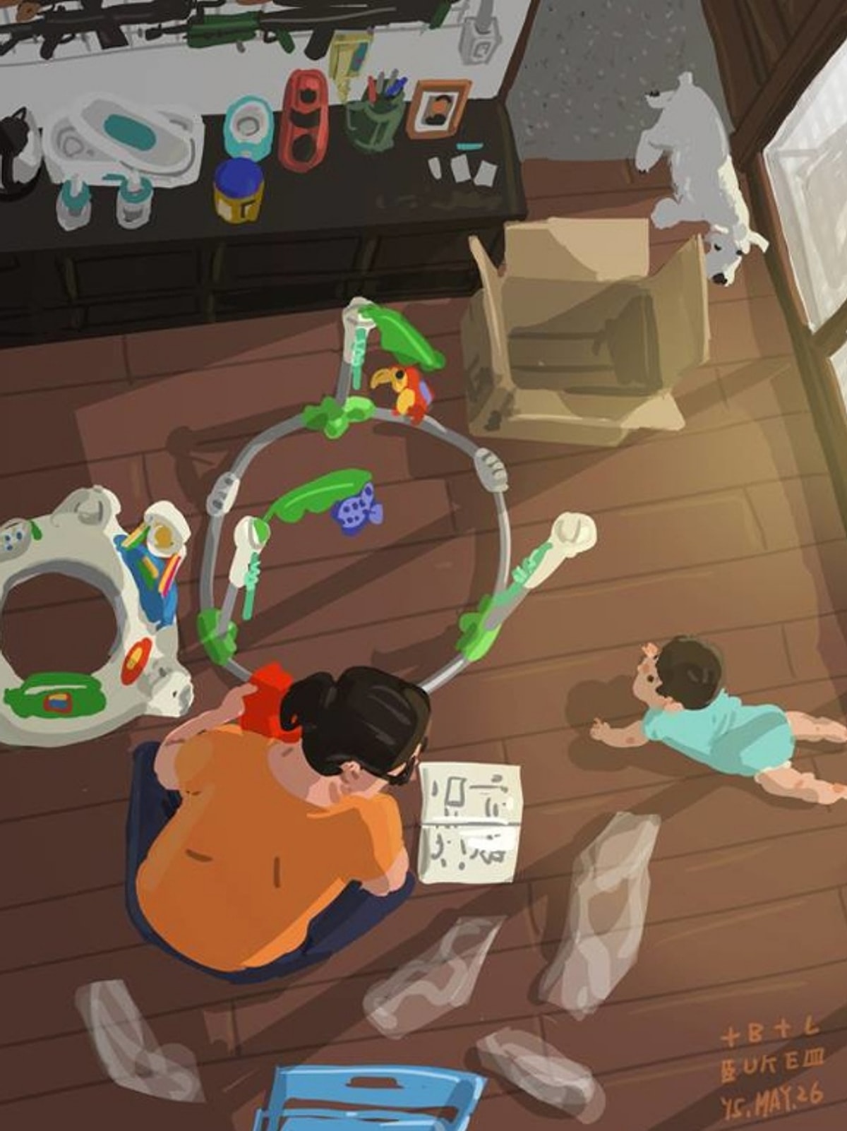 Лань Шэнцзе, известный под псевдонимом Blue, — профессиональный художник-фрилансер с 1999 года. После рождения сына в 2014 году он начал создавать серию зарисовок, фиксирующих повседневные трудности и радости отцовства. Эти иллюстрации стали не просто личным дневником, а настоящим творческим проектом, который позже был издан в виде книги издательством Sharp Point Press.