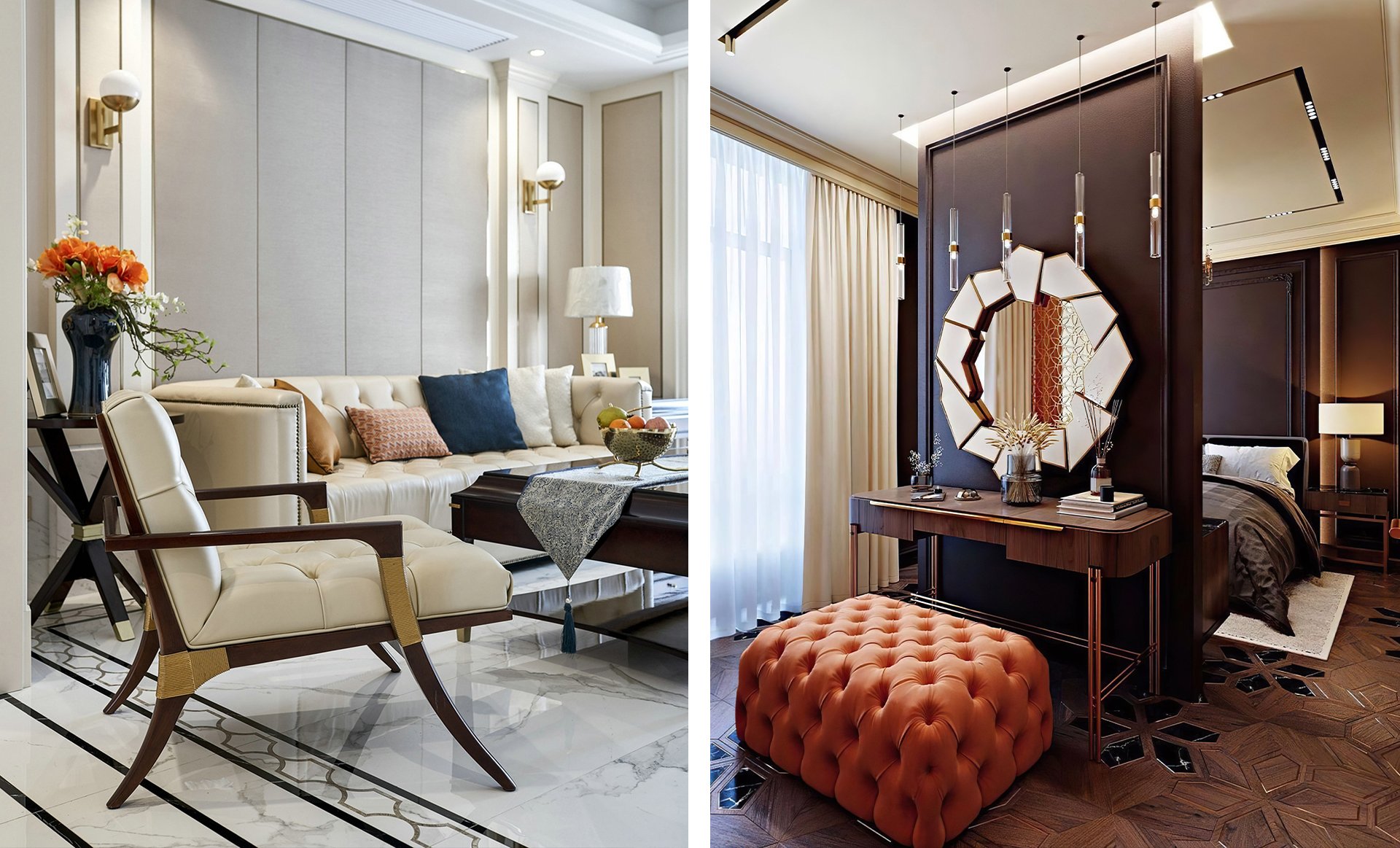 Этот стиль, переживающий новый виток популярности, представляет собой эффектный синтез модернизма и неоклассицизма. Его главная задача — создать впечатление роскоши и шика, но при этом важно соблюсти баланс, чтобы не скатиться в безвкусицу.