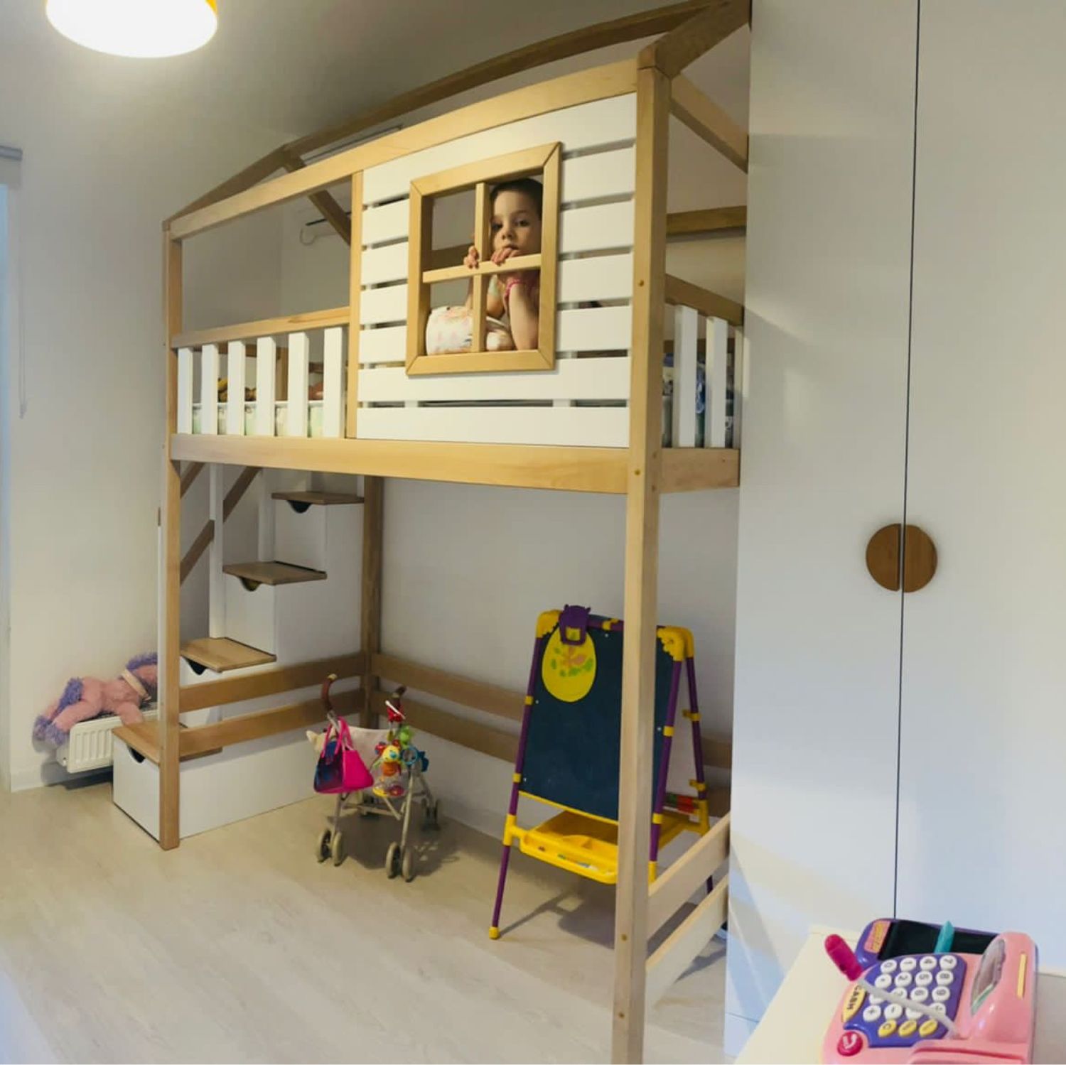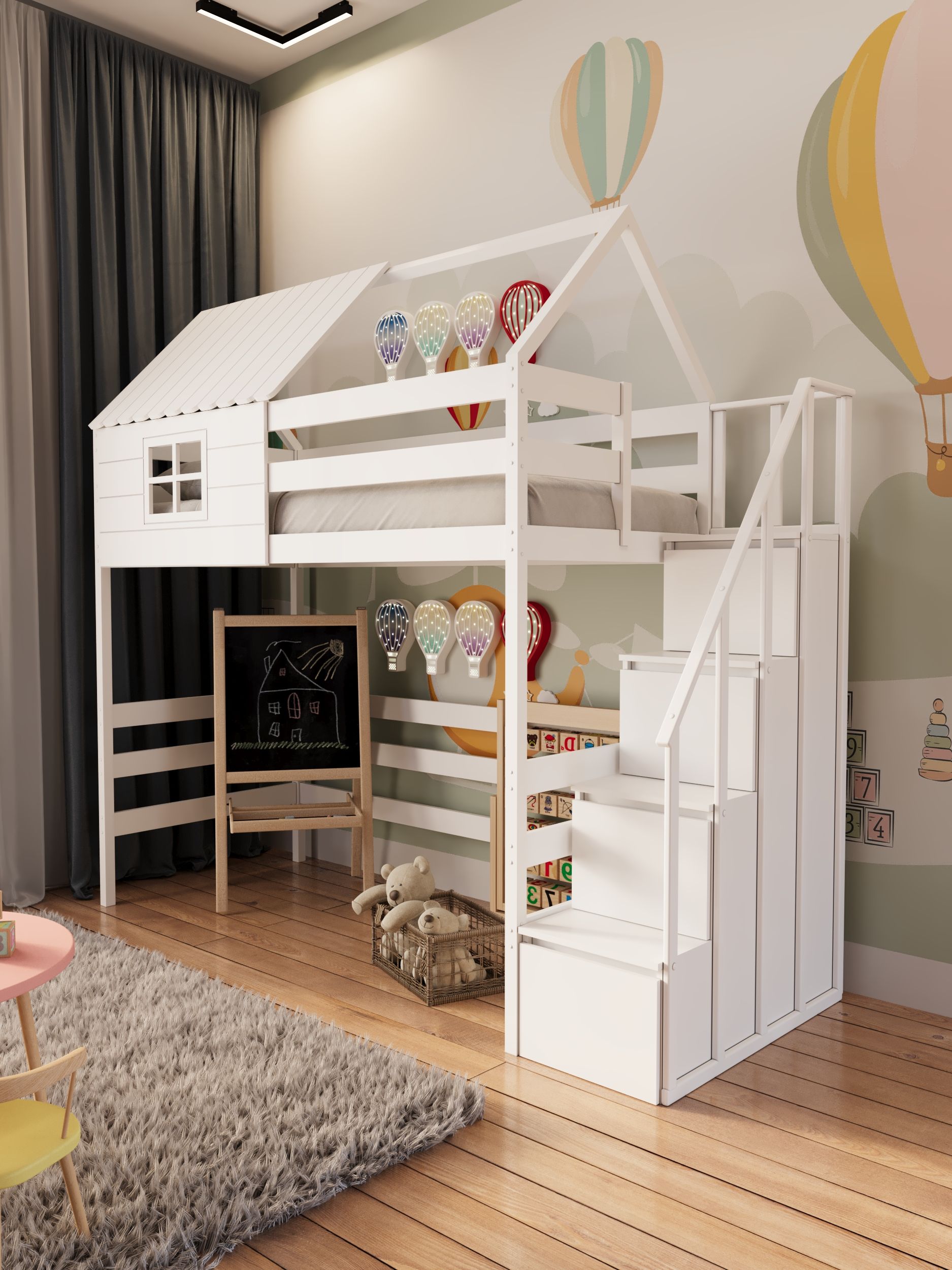 Высота конструкции — ключевой параметр. Большинство примеров в интернете рассчитаны на детей от 5 лет и подростков, для которых подъем на высоту 1,5–2 метра не составляет труда. Однако если вы выбираете мебель для малыша, необходимо учесть несколько важных моментов.