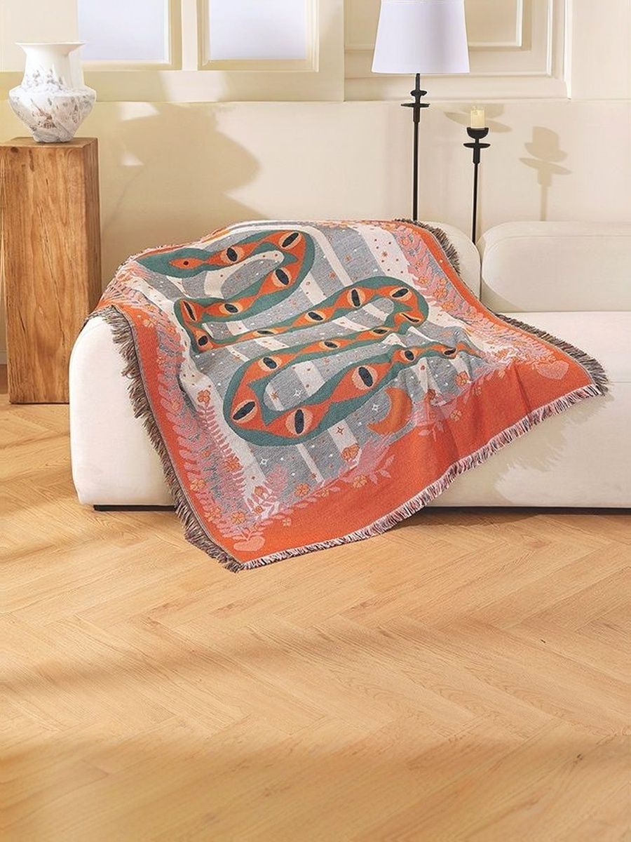 Если ваша цель — полная гармония, и ни одна деталь не должна выбиваться из общей концепции, обратите внимание на пледы с уникальными принтами. Например, графичные этнические узоры в стиле майя прекрасно впишутся в интерьер, построенный на натуральных, «земляных» оттенках: песка, глины, сухой травы.