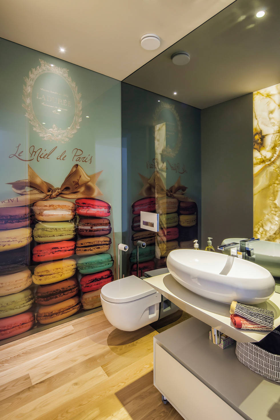 Не бойтесь ярких акцентов! Если ремонт стен — слишком радикальный шаг, добавьте цвет через аксессуары. Яркие полотенца, стильный коврик, фрагмент фотообоев на одной стене или даже виниловые наклейки с надписями мгновенно оживят монохромный интерьер.