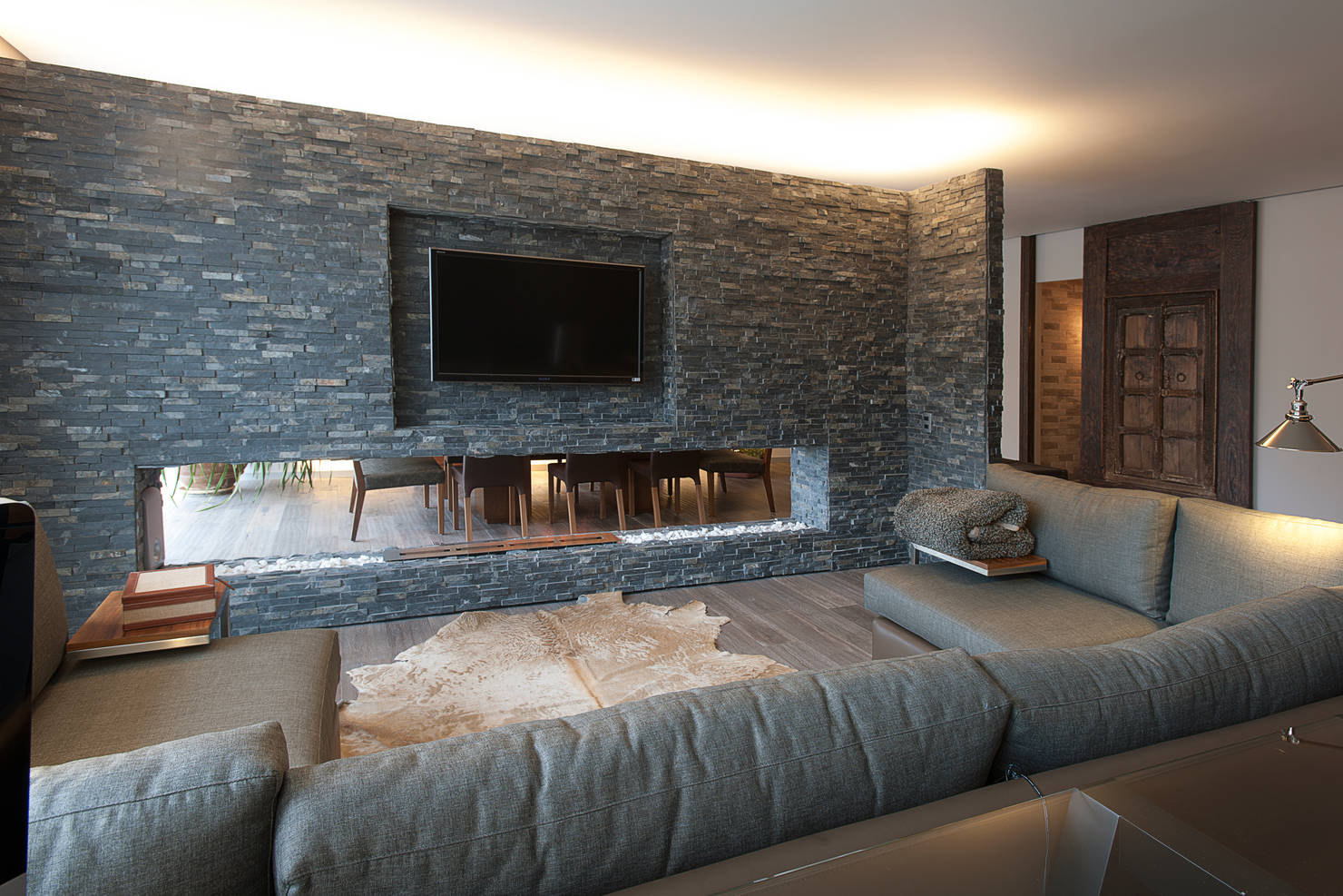 Камень — это материал с ярко выраженным характером и природной аутентичностью. Он удивительно универсален: подходит как для современных минималистичных интерьеров, так и для уютного деревенского стиля. Каменная кладка добавляет стенам рельефности и глубины. Необязательно отделывать всю комнату — часто достаточно одной акцентной стены, чтобы задать тон всему пространству и создать запоминающийся дизайн.