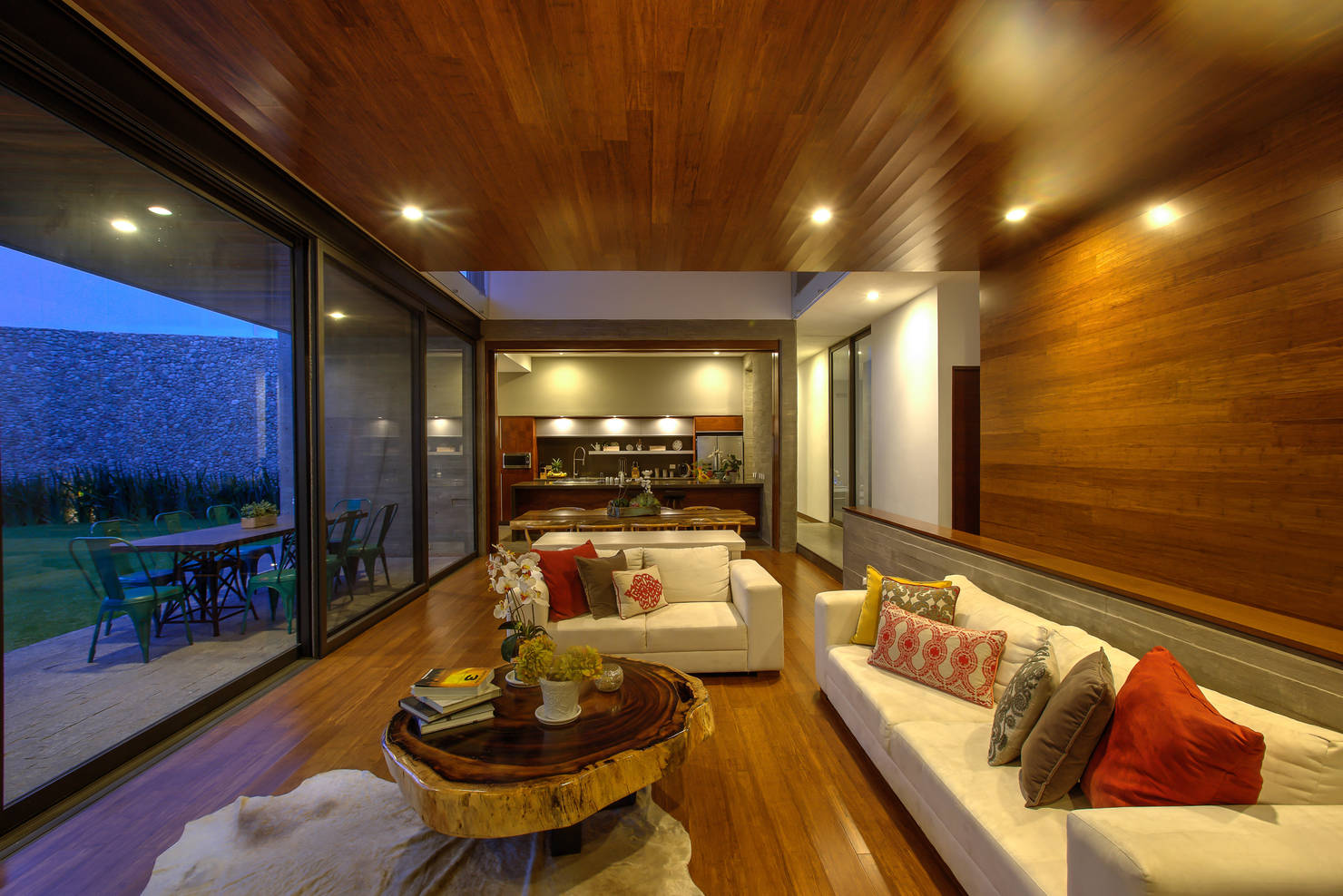 Сочетание массивных каменных блоков с тёплой фактурой дерева — беспроигрышный вариант. Этот дуэт выглядит фундаментально, естественно и невероятно привлекательно. Оба материала являются отличными теплоизоляторами, что делает дом не только стильным, но и по-настоящему уютным и энергоэффективным.