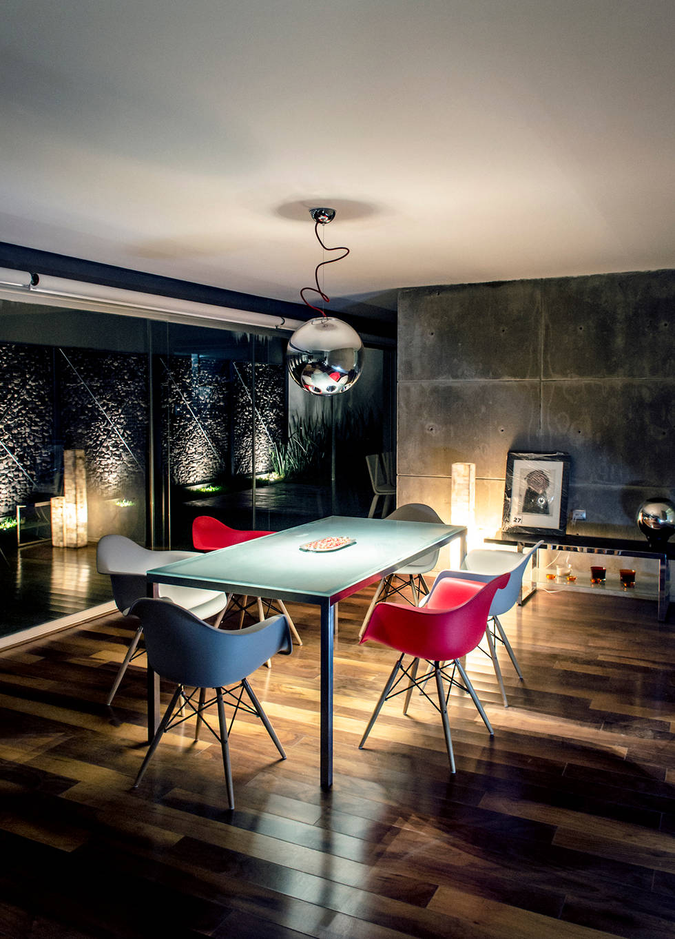 Бетон — выбор для смелых и творческих личностей, ценящих эстетику лофта и индустриального стиля. Не зря знаменитый архитектор Тадао Андо называл его «мрамором XX века». Это практичный, долговечный и относительно доступный материал. Его нейтральный серый цвет служит идеальным фоном для создания ярких акцентов и смелых контрастов в интерьере.