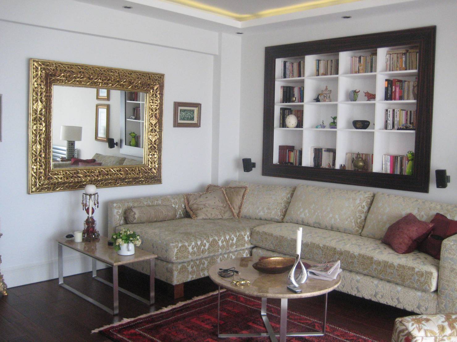 В небольших помещениях каждая деталь имеет значение. Если стены завешаны картинами, полками и декором без чёткой системы, комната кажется тесной и хаотичной. Для маленькой гостиной лучше оставить стены относительно свободными, сгруппировав мебель в центре. Если хочется добавить искусства на стены, выбирайте работы в одной цветовой гамме или стиле и объединяйте их в композицию, например, в виде симметричной галереи.