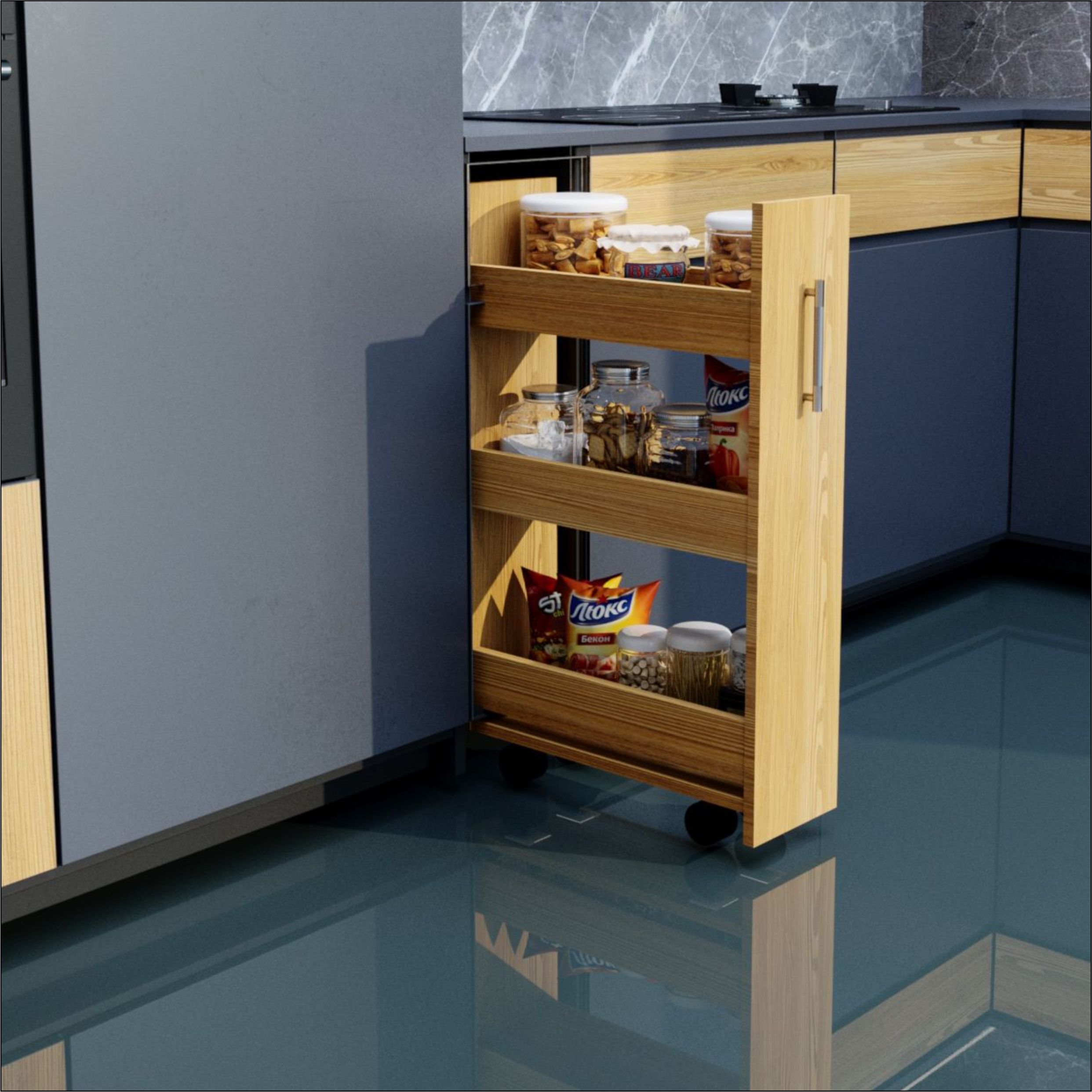 Классическая конструкция на четырех ножках — это синоним мобильности. Вы можете легко переставлять такой шкаф, меняя конфигурацию кухни под настроение или задачу. Регулируемые ножки помогают выровнять мебель даже на неровном покрытии. Но главное практическое преимущество — это беспрепятственный доступ к полу для уборки. Больше никаких труднодоступных уголков, где скапливается пыль и грязь.