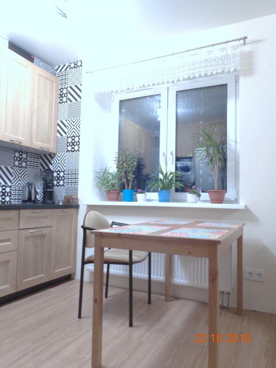 Проект ещё не завершён. Предстоит решить несколько важных задач: установить плинтусы, продумать систему вентиляции, выбрать стулья и, наконец, подобрать достойные шторы. Пока их роль исполняют горшки с растениями на подоконнике и бабушкины кружева, но в голове уже роятся идеи по их замене.