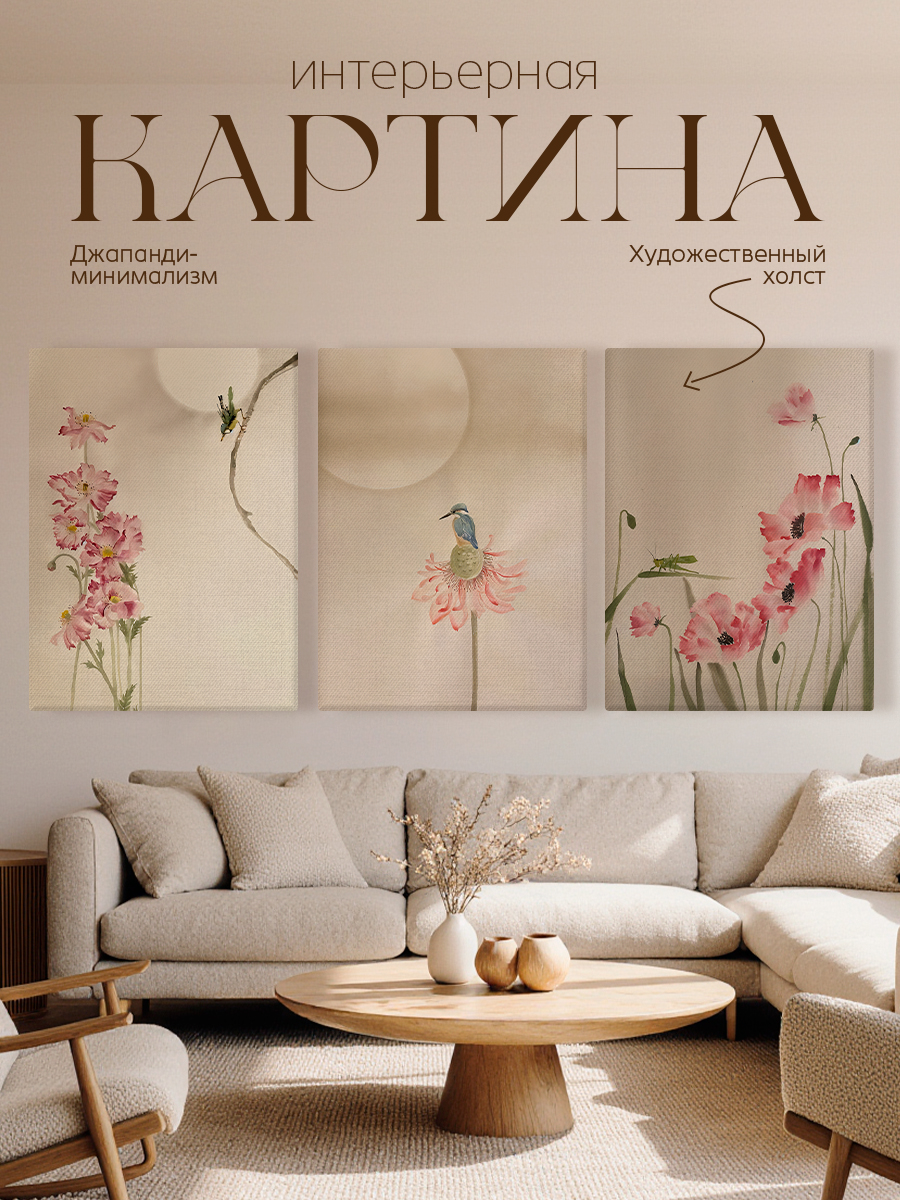 Таким образом, модульные картины с цветами — это универсальный и стильный элемент декора, который способен преобразить любое пространство, добавив ему индивидуальности, тепла и природной гармонии.