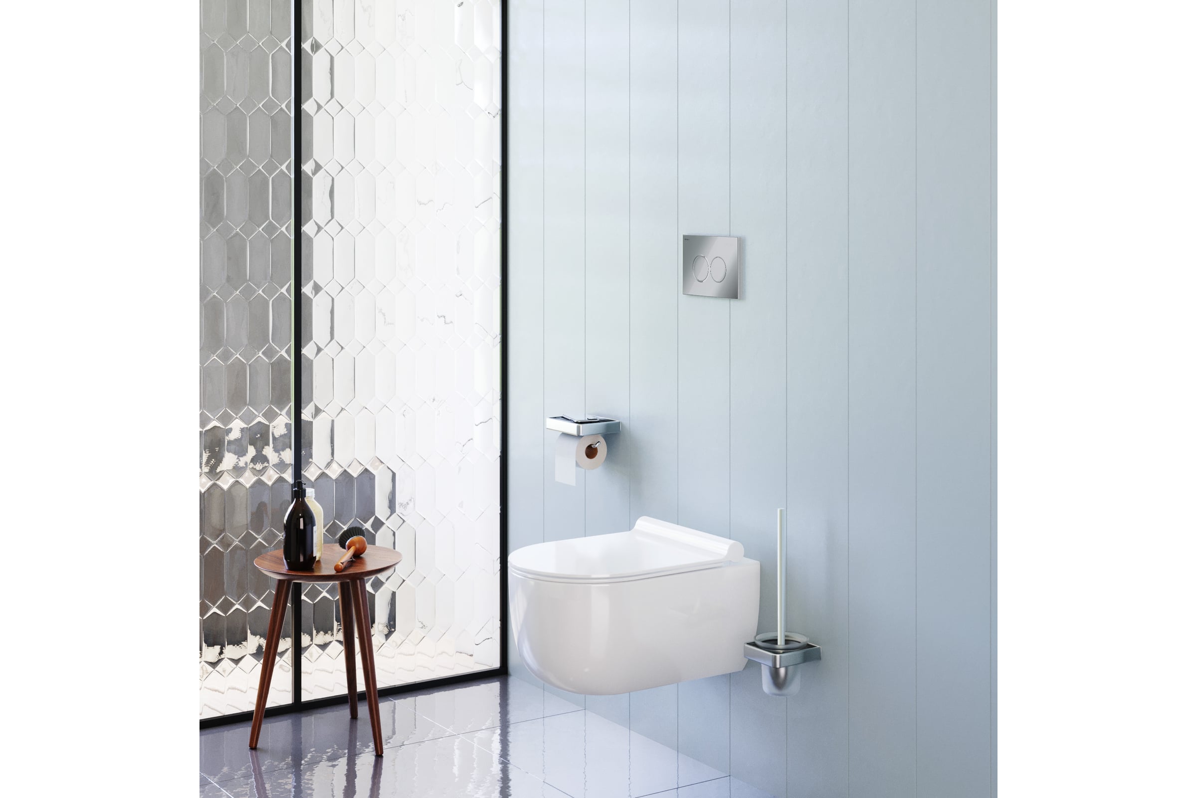 Стильный подвесной унитаз в современной ванной