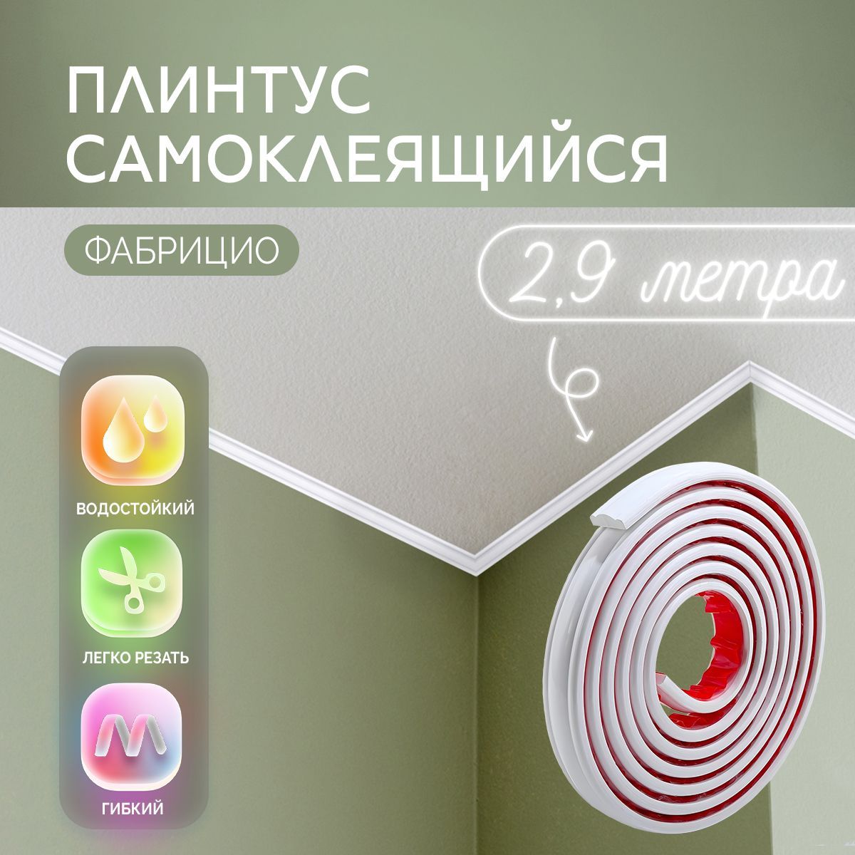 Самоклеящийся плинтус – это гибкая лента из ПВХ, на тыльную сторону которой уже нанесен слой клея, защищенный бумажной подложкой. Его главные козыри – невероятная простота монтажа и способность огибать криволинейные стены, колонны и выступы.