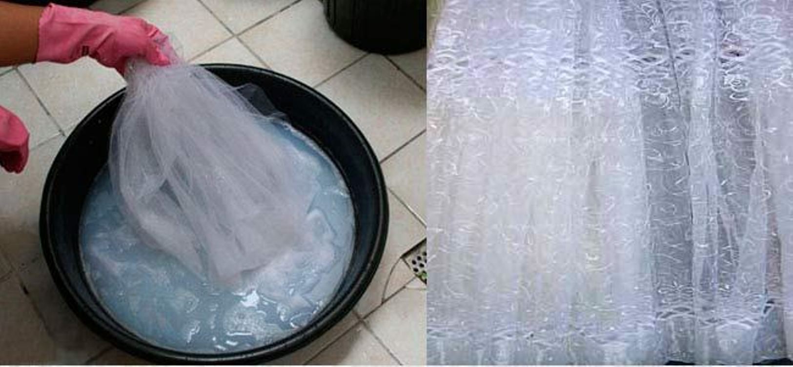 Отбелить тюль из органзы и прочих тонких синтетических тканей таким способом не стоит пытаться, поскольку такая тонкая ткань боится горячей воды. Её волокна могут изменить структуру и общую форму тюля.