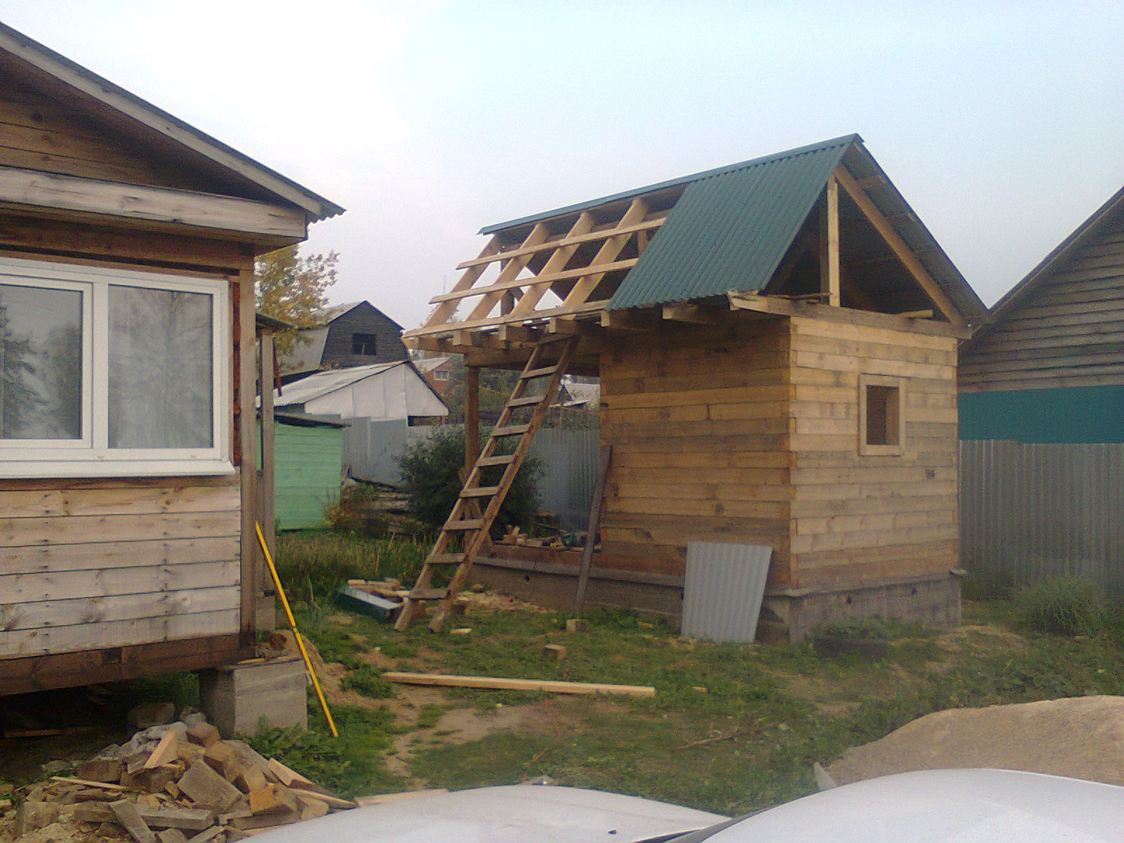 Двускатная крыша небольшой бани