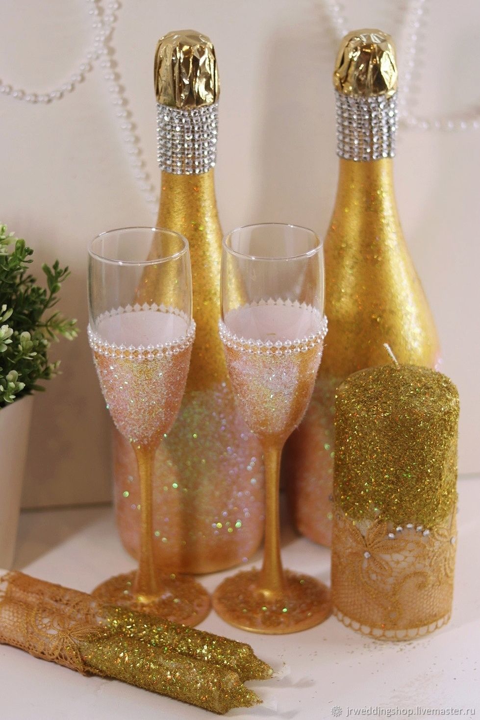 Если же вы не готовы декорировать бокалы самостоятельно, всегда можно купить готовый набор бокалов для шампанского.