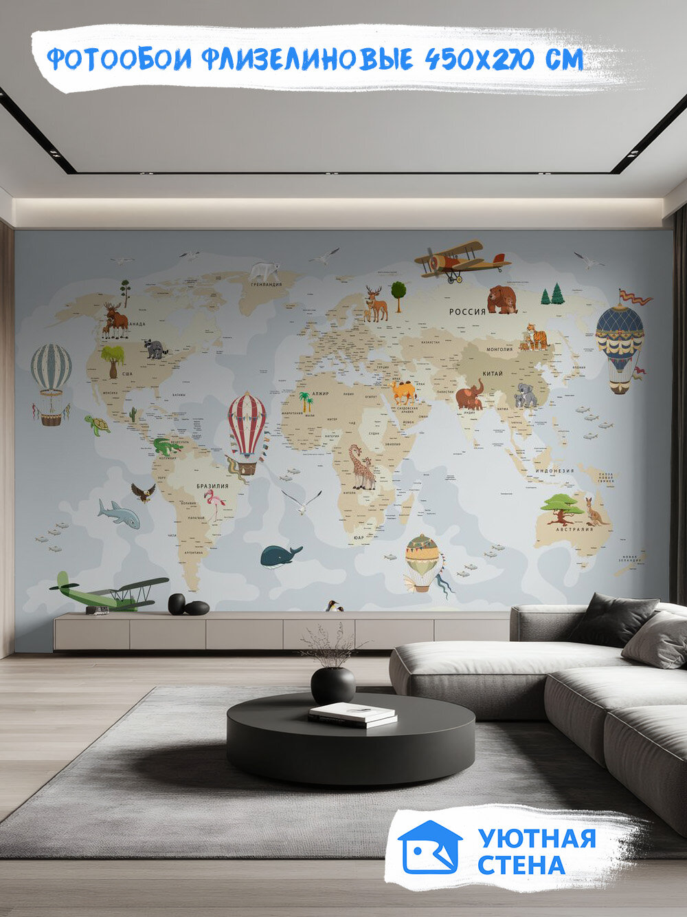 Как видите, богатое разнообразие позволяет использовать фотообои с картой мира где угодно. В детской они будут работать как образовательный инструмент, а в гостиной или спальне — прежде всего как стильный и смысловой акцент, раскрывающий характер и интересы обитателей дома.