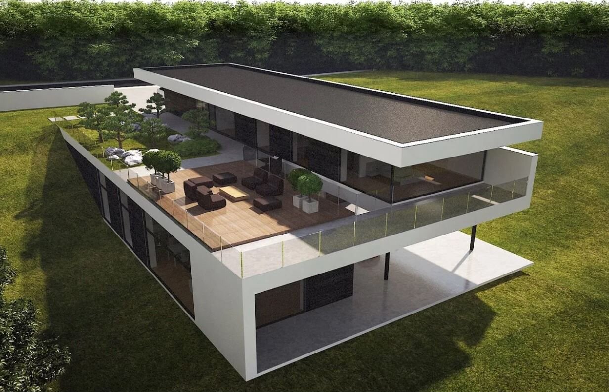 Плоская крыша популярна в современных постройках