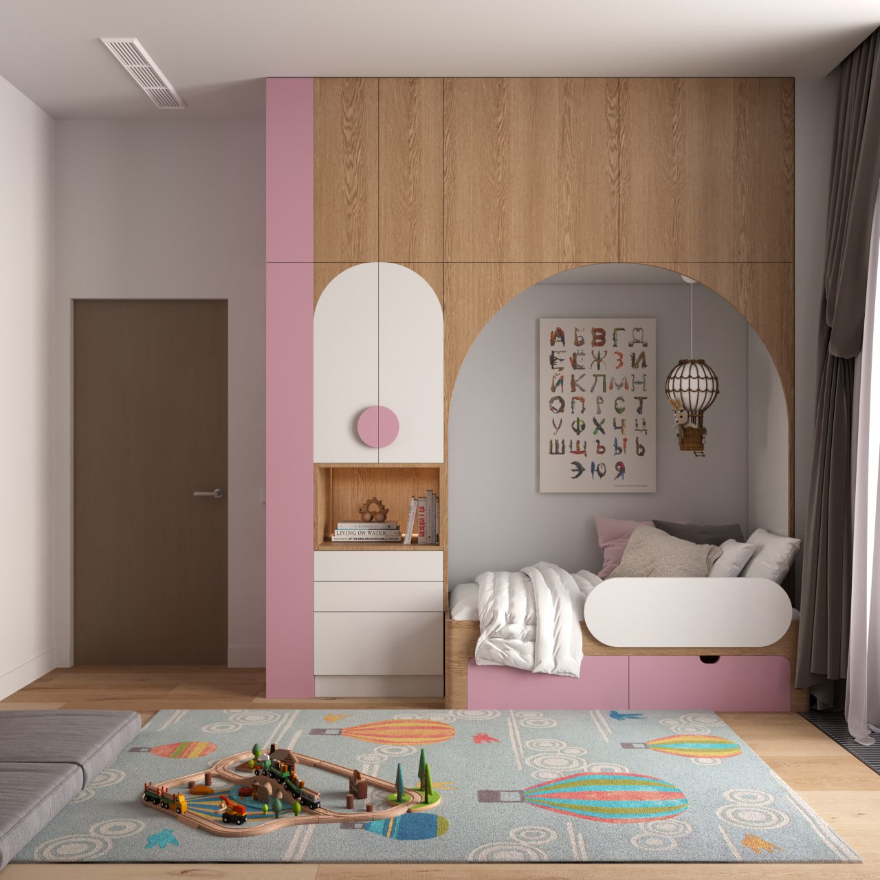 Объемный встроенный шкаф в комнате для девочки (фото)