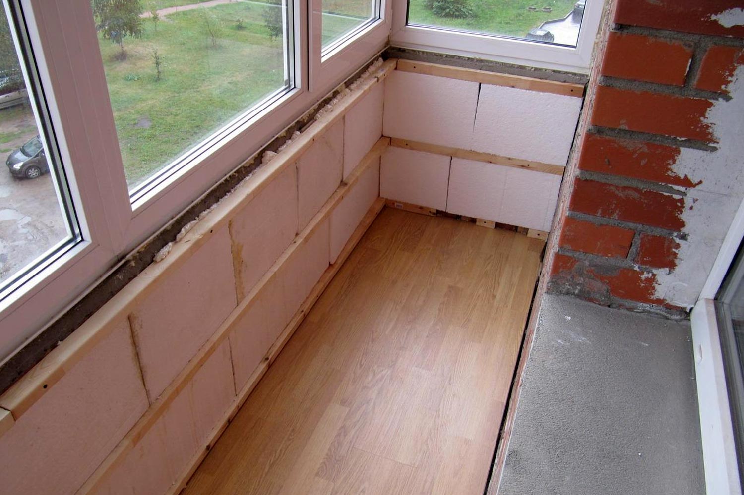 Когда обрешетка будет помещена на всех стенах балкона, можно приступать к созданию изоляции и утеплению поверхностей.