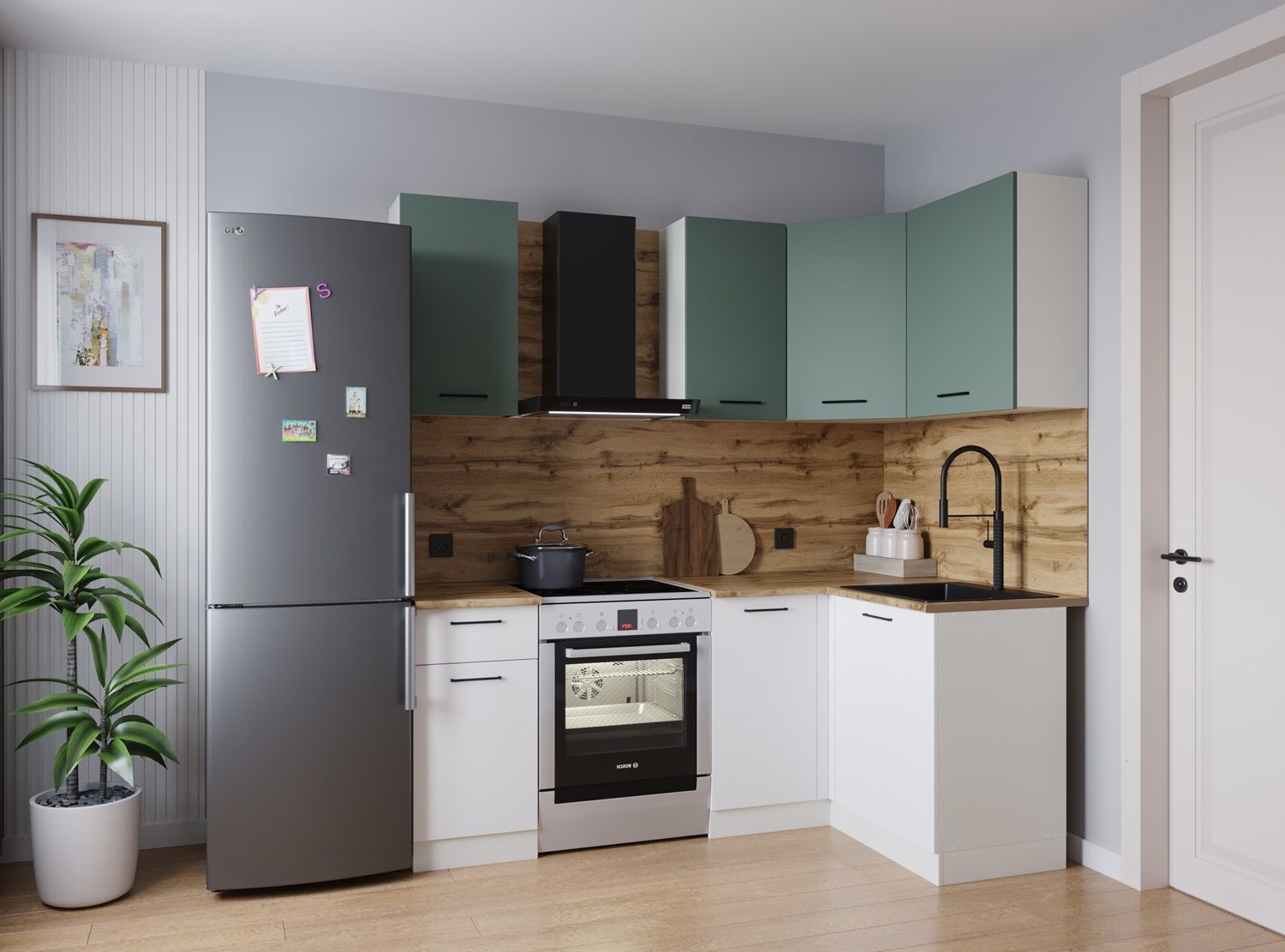 Получается, что вы можете самостоятельно собрать нужную вам конфигурацию гарнитура, играя с его составными частями как с конструктором. Тем более, что со временем вы сможете сделать перестановку и получить принципиально новый интерьер, используя старую мебель — так что модули сделают вашу кухню универсальной и практичной, но при этом индивидуальной.