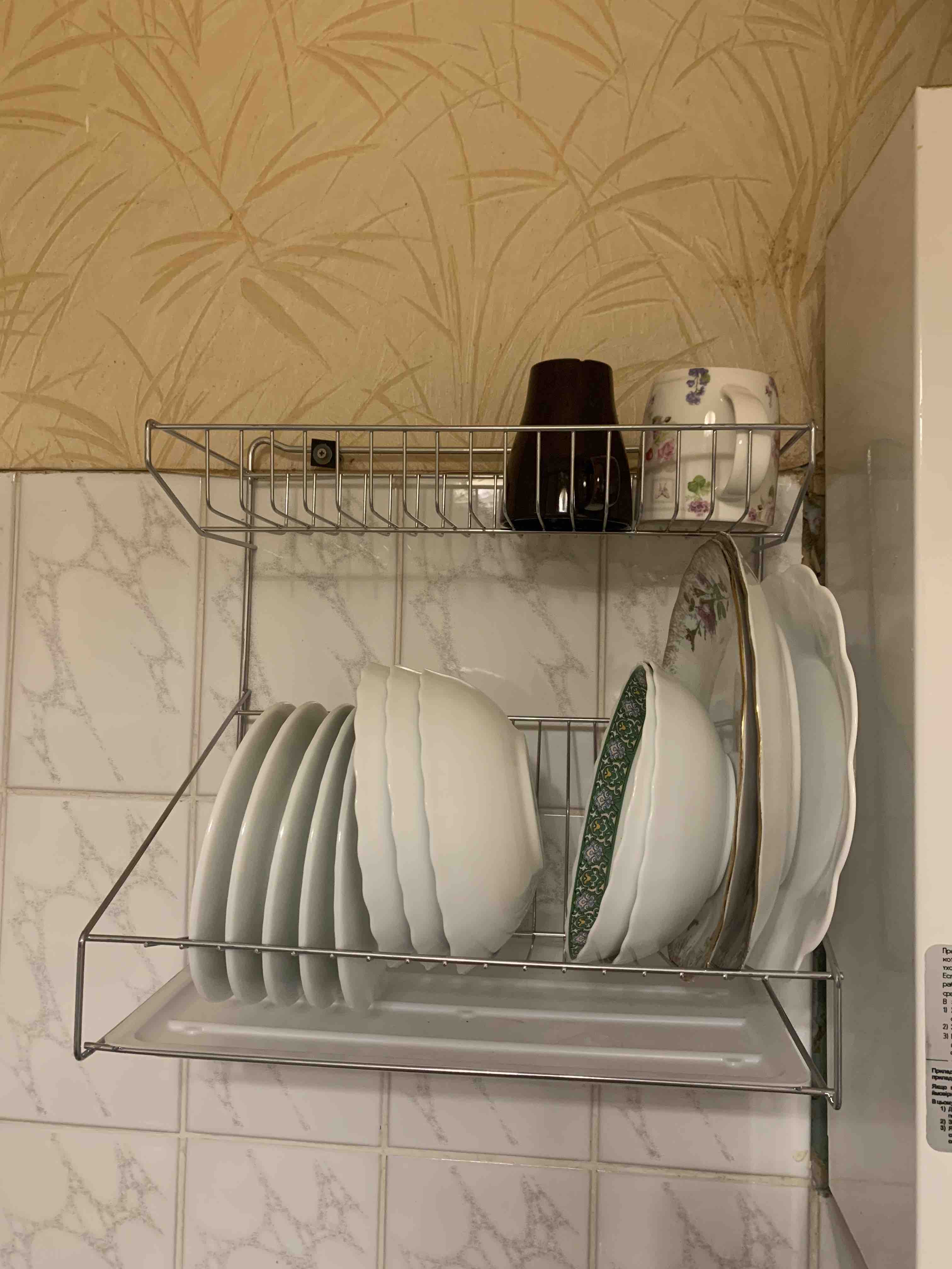 С виду очень простая, но на самом деле достаточно вместительная и удобная в использовании конструкция металлической сушилки для посуды