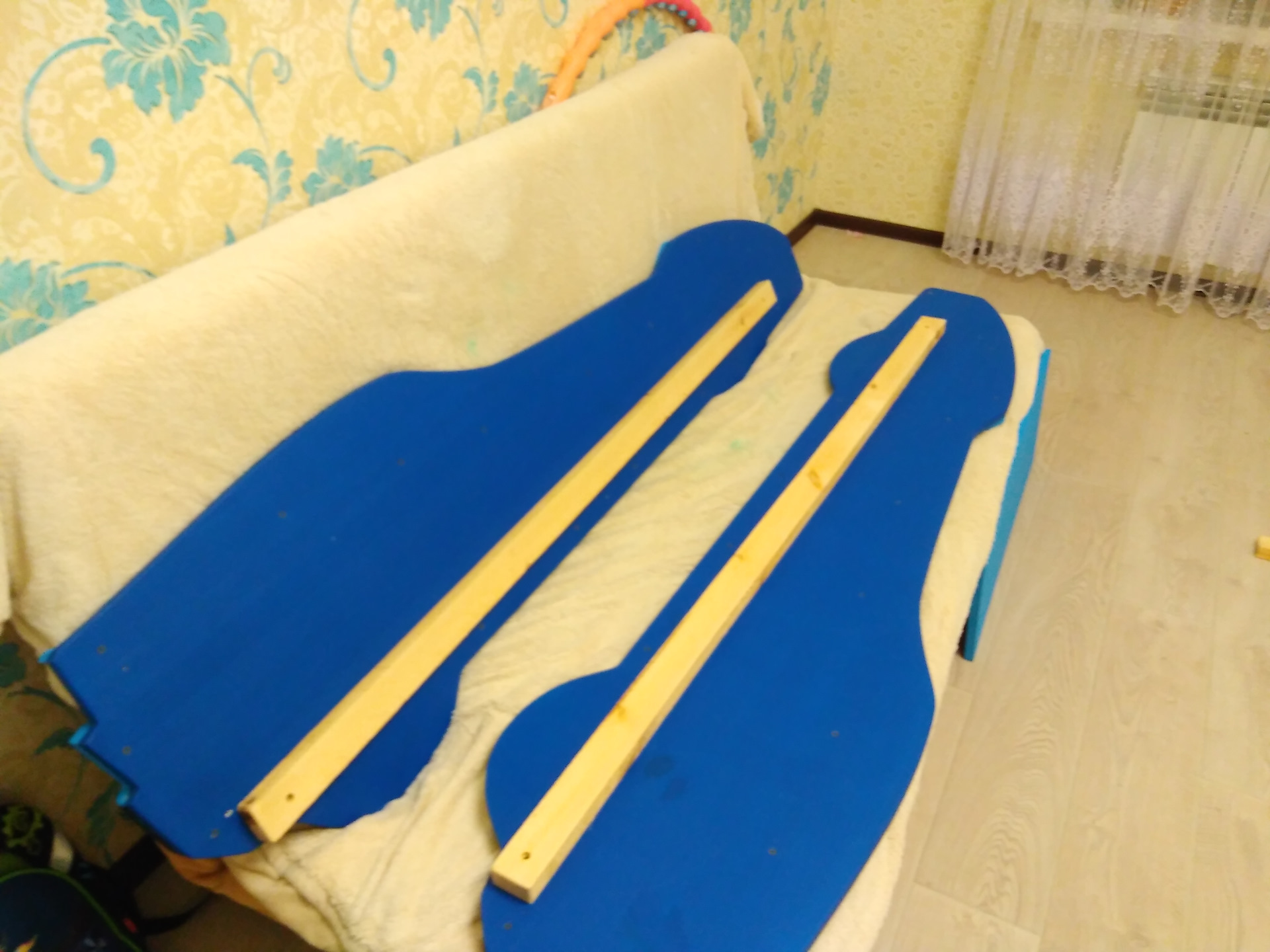 После полного высыхания начинается окончательная сборка. Сначала к нижней части каркаса крепятся ролики. Затем на каркас монтируются все декоративные элементы кузова машины. Головки крепежа можно замаскировать, закрасив их краской в тон.