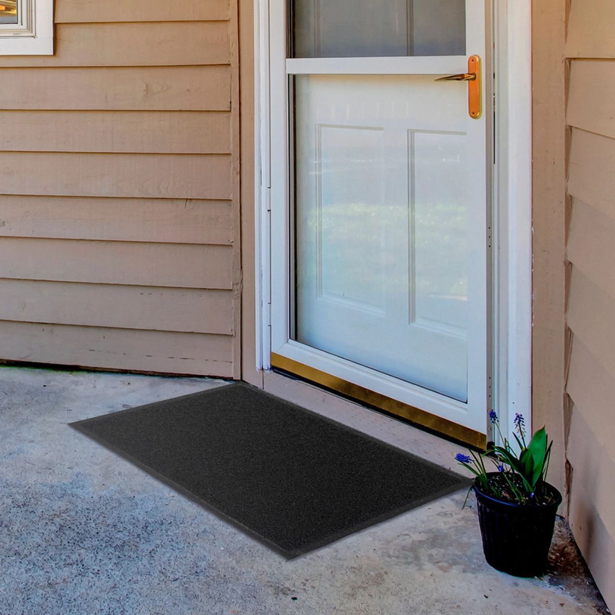 Для загородных домов, а также других мест с невысокой проходимостью можно купить коврик на ПВХ основе. Это недорогое изделие хорошо удерживает в себе воду, грязь и мелкие частицы. Грязезащитные коврики ПВХ долговечны и не прихотливы в уходе: их можно чистить щеткой, мыть водой с моющими средствами, пылесосить.