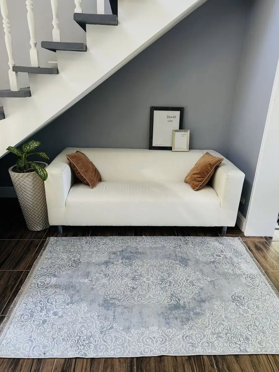 Для просторных комнат стоит приобретать модели несколько большего размера – 2×4 м. В этом случае не потребуется двигать мебель, чтобы застелить пол, так как ковер частично размещается под диваном, креслами.