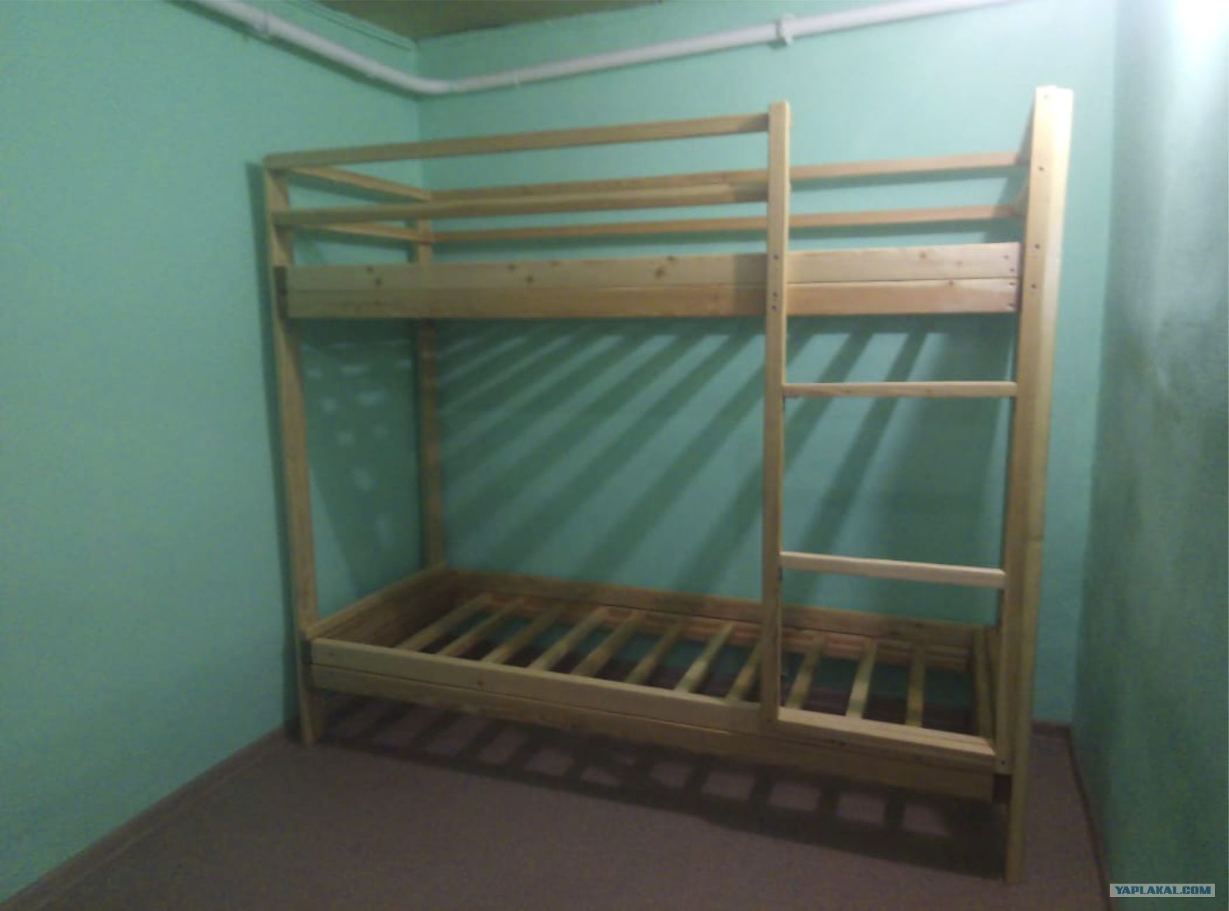 1. Сборка каркаса: Готовые спальные места (полки) крепятся к внутренним сторонам стоек на заранее размеченной высоте. Соединение осуществляется с помощью струбцин, проверяется перпендикулярность, после чего полки фиксируются на мощные винты.