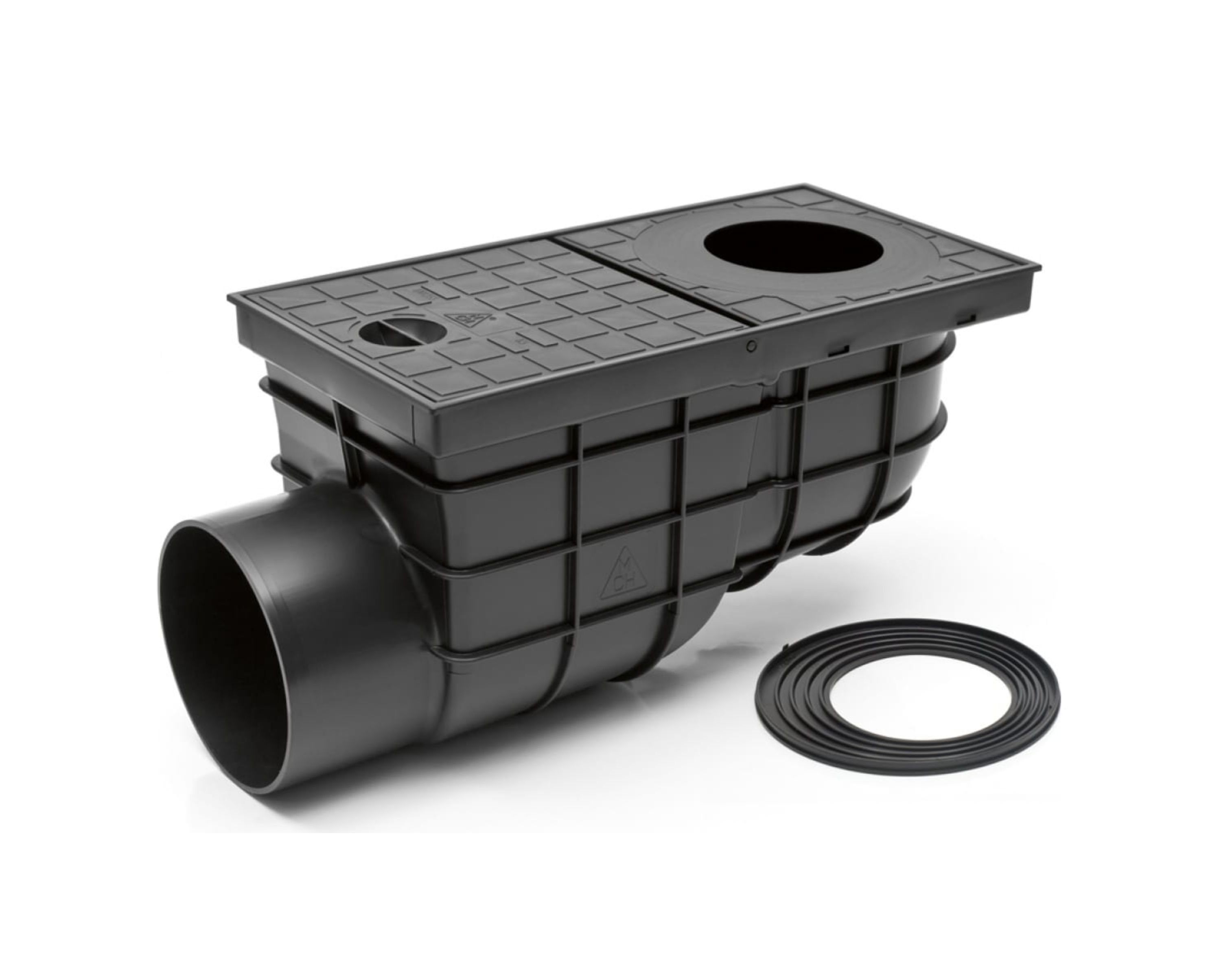 Конструктивно дождеприемник представляет собой полую камеру (корпус) с открытым верхом, который закрывается решеткой. В боковых стенках предусмотрены патрубки для подключения канализационных труб. Стандартная комплектация включает: