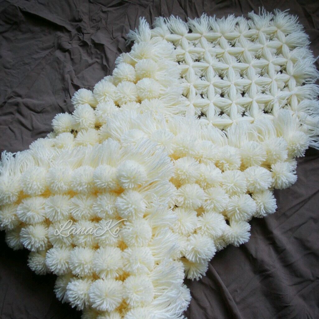 Пушистый плед из помпонов: знакомство с техникой и мастером