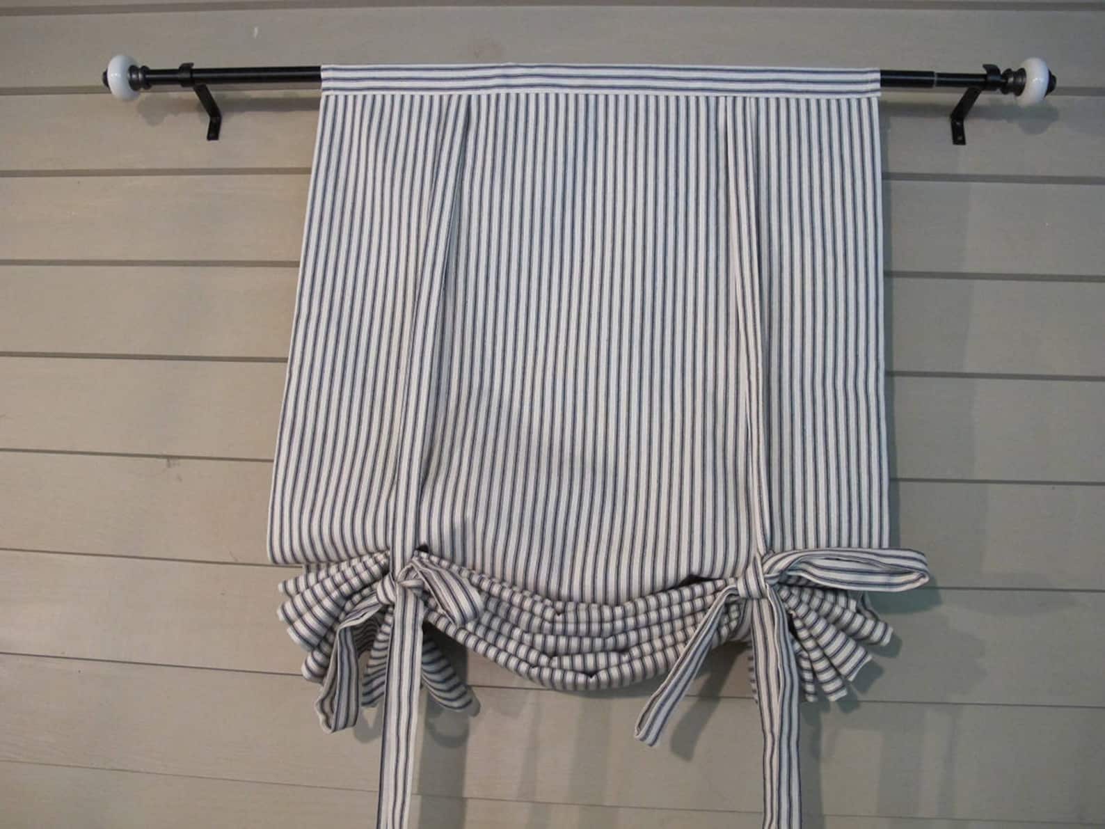 Сделайте шов на расстоянии 2,5 см от края, чтобы закрепить подвязку. Отогните оба конца вверх и сделайте еще один шов на расстоянии 5 мм от края ткани. Итак, вы закрепили подвязку на шторе. Проделайте аналогичные действия с остальными полосками. Вы можете также подрубить все концы подвязок.