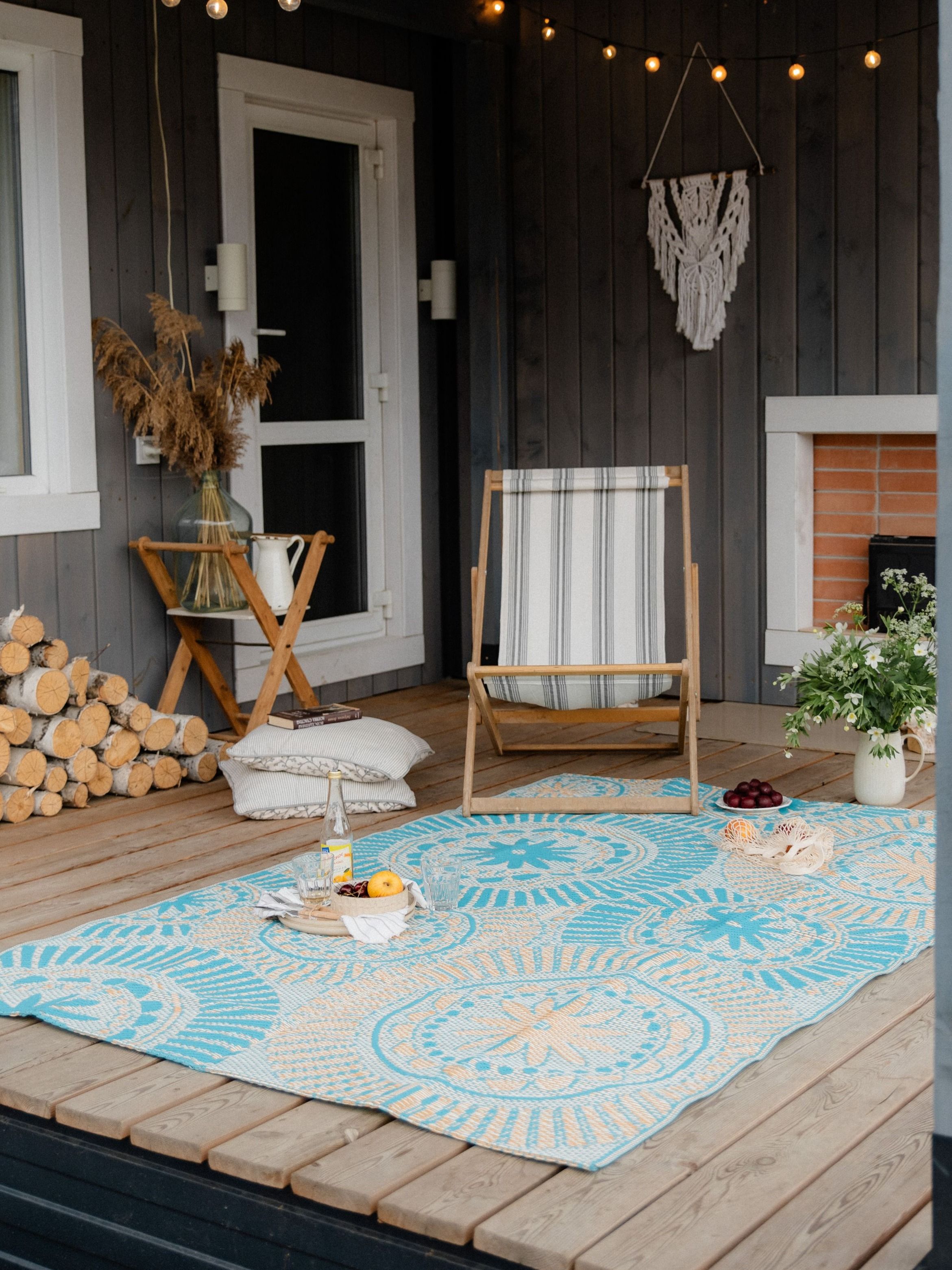 Недавно мы с мужем купили на распродаже резиновый ковёр для двора. Его цвет показался мне слегка унылым, и я решила, что декор уличного ковра может быть намного интереснее. Я украсила его разноцветными полосками, думаю, полоски будут всегда актуальны, и кроме того, они мне очень нравятся. Не знаю, как долго продержится краска, но хотя бы на сезон её хватит, это точно!