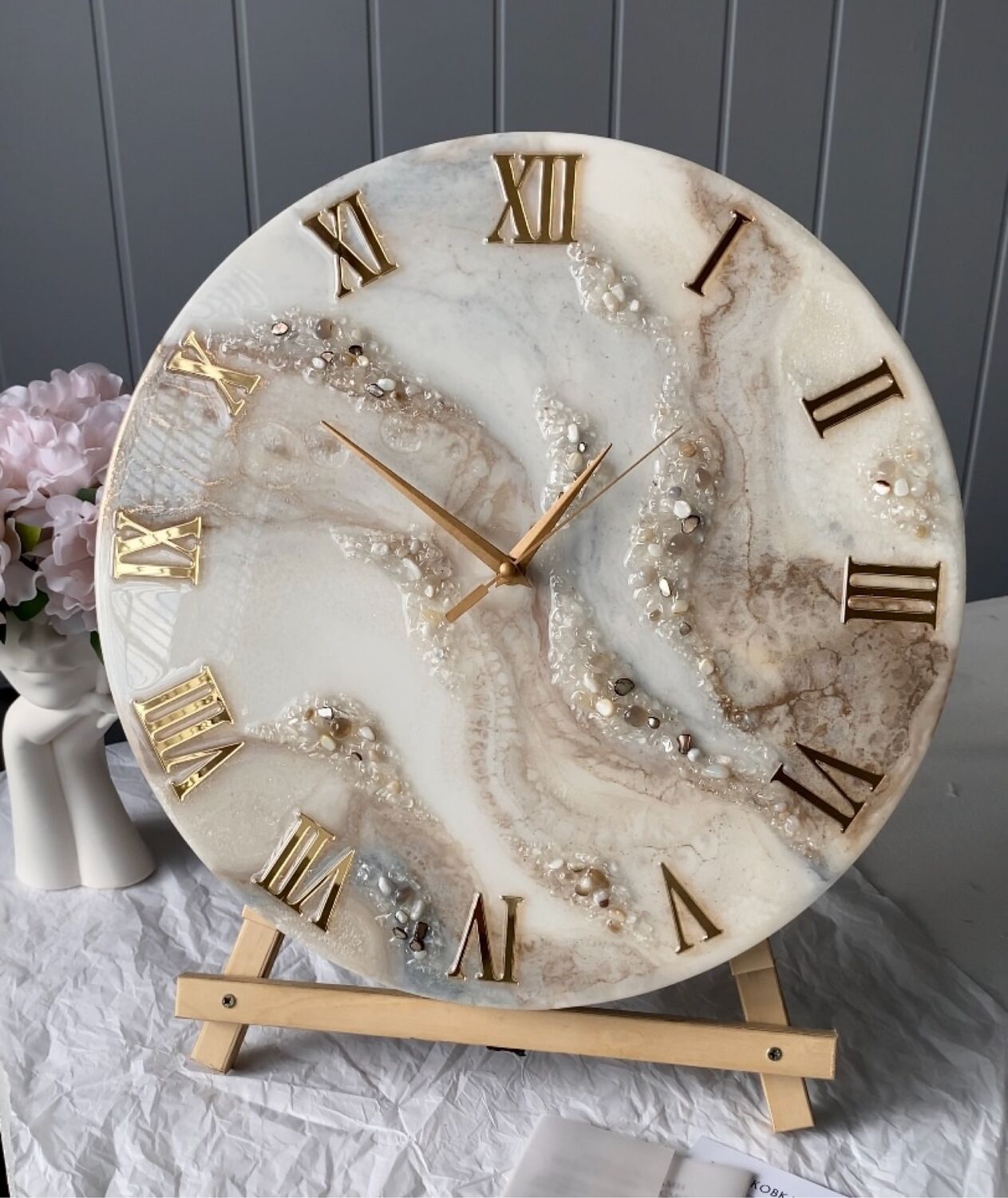 Боковую сторону часов по своему желанию также можно украсить узором и нанести мозаичную плитку. Как было описано в предыдущем шаге, сначала супер клеем зафиксируйте каждый кусочек мозаики, затем примените пасту и заполните всю поверхность и щели между мозаичной плиткой.Далее необходимо окончательно убрать все остатки пасты и после полного высыхания протереть влажной салфеткой каждую плитку. Декор и основа настенных часов ручной работы готова для дальнейших действий, а именно для прикрепления часового механизма.